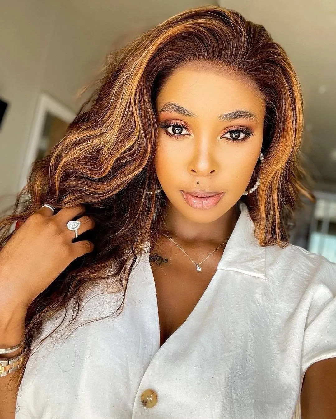 Wanted to wear the wig before leaving a review. This is like the 100th wig I've bought so I know the quality is A1. Not too much shedding and it holds curls nicely. The highlights are beautiful and not too chunky. I didn't bleach the knots bc there is so little lace. I just used concealer on the lace and added a little bit of black makeup at the part to make it look more natural. Seller stays in contact every step of the way. Buy this wig!!