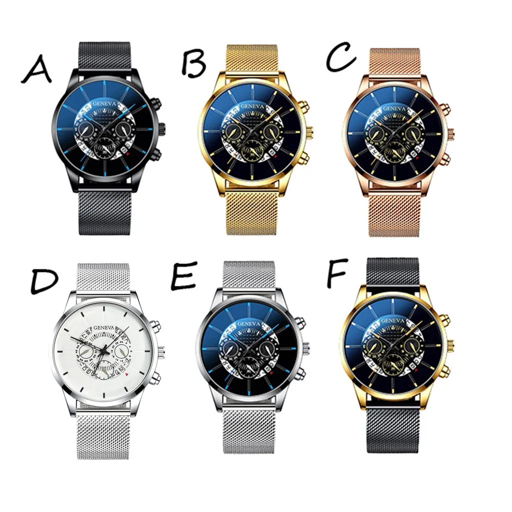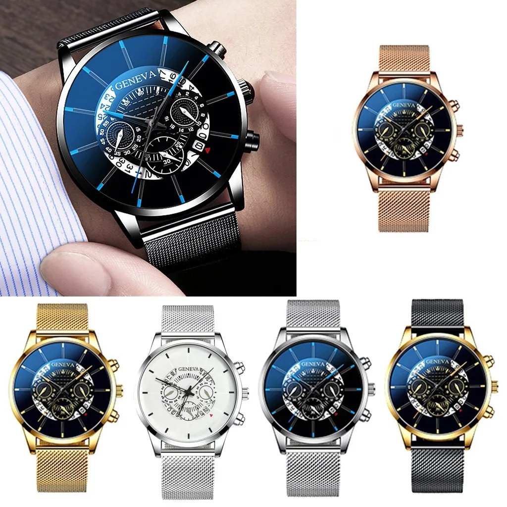 Мужские модные часы с сетчатым браслетом из нержавеющей стали, квар...