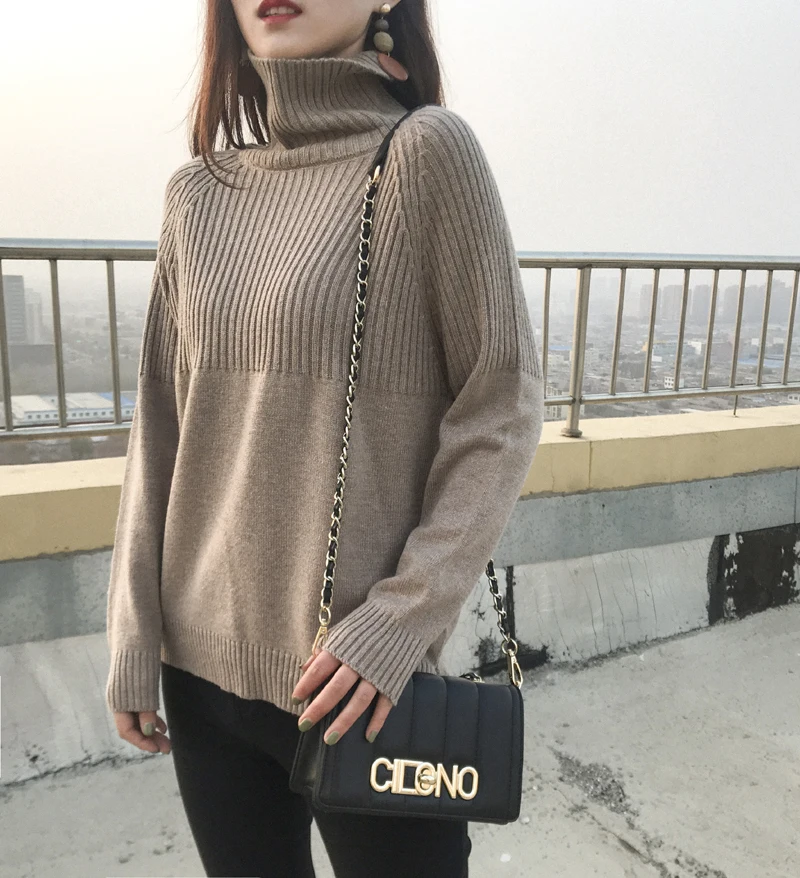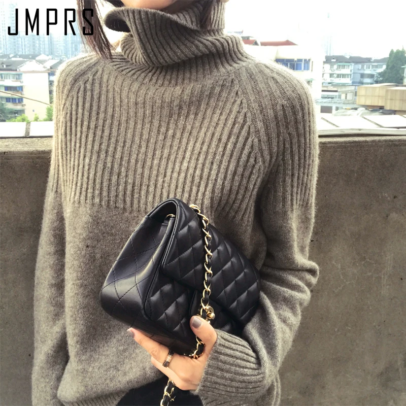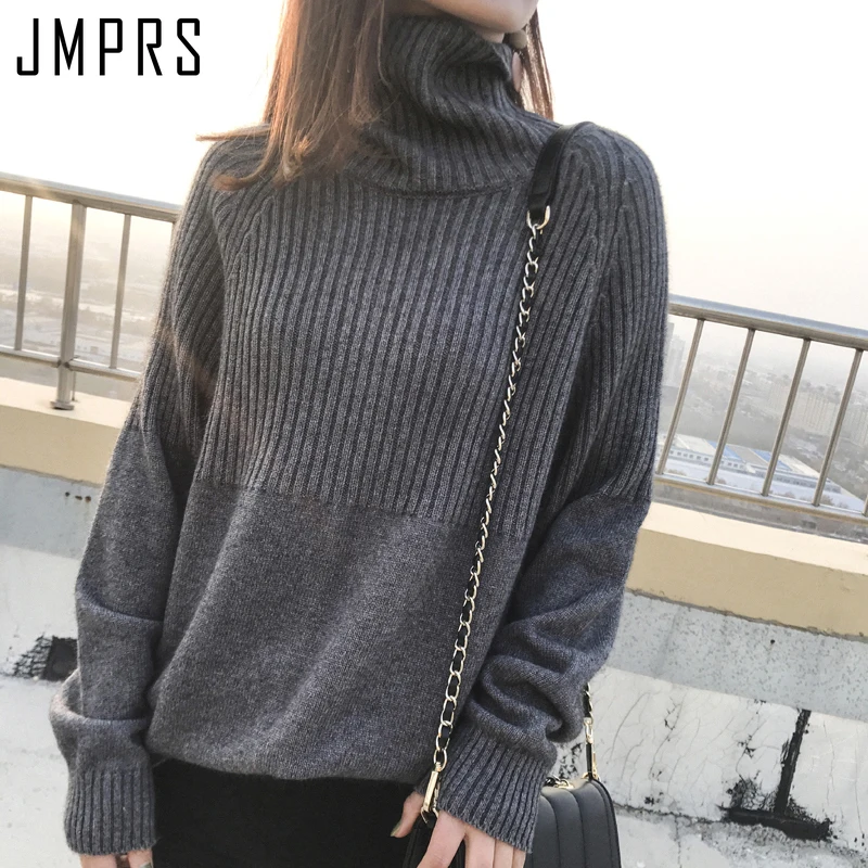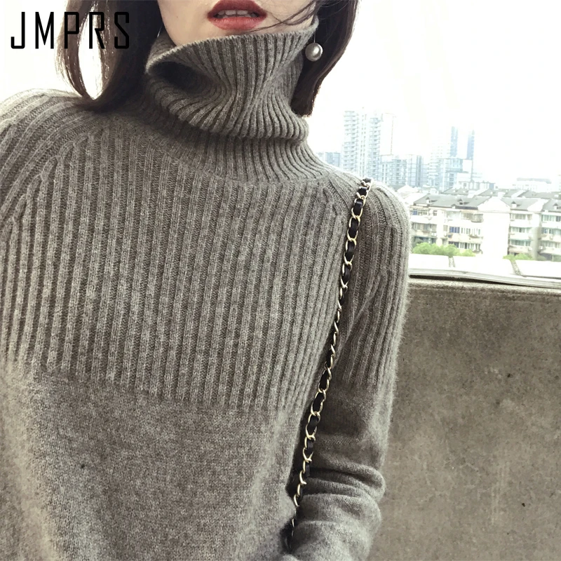 Свитер JMPRS с высоким воротником, зимние свободные пуловеры, однотонные тянущиеся полосатые вязаные топы, женский джемпер в стиле Харадзюку, одежда