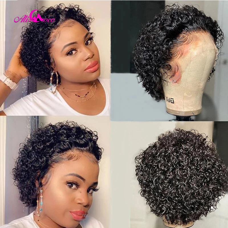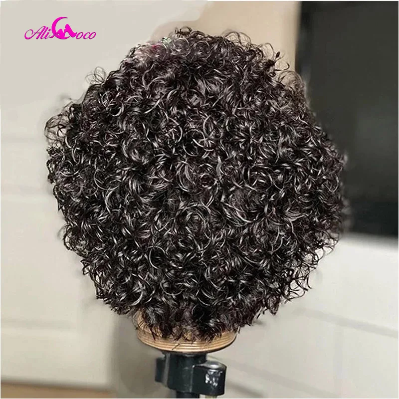 Короткие вьющиеся парики Pixie Cut Bob 13x 1, парики из человеческих волос на фронте, бразильские волосы Remy 8 дюймов, человеческие волосы для наращивания с детскими волосами