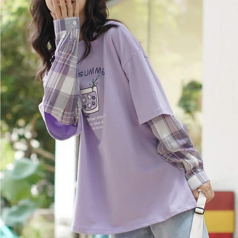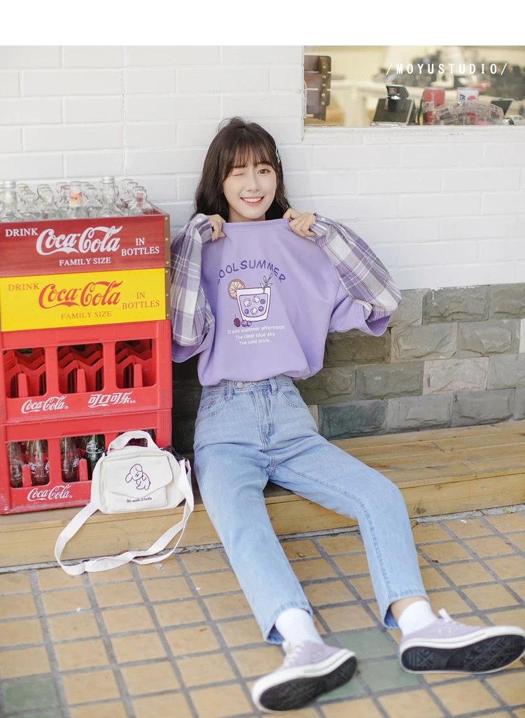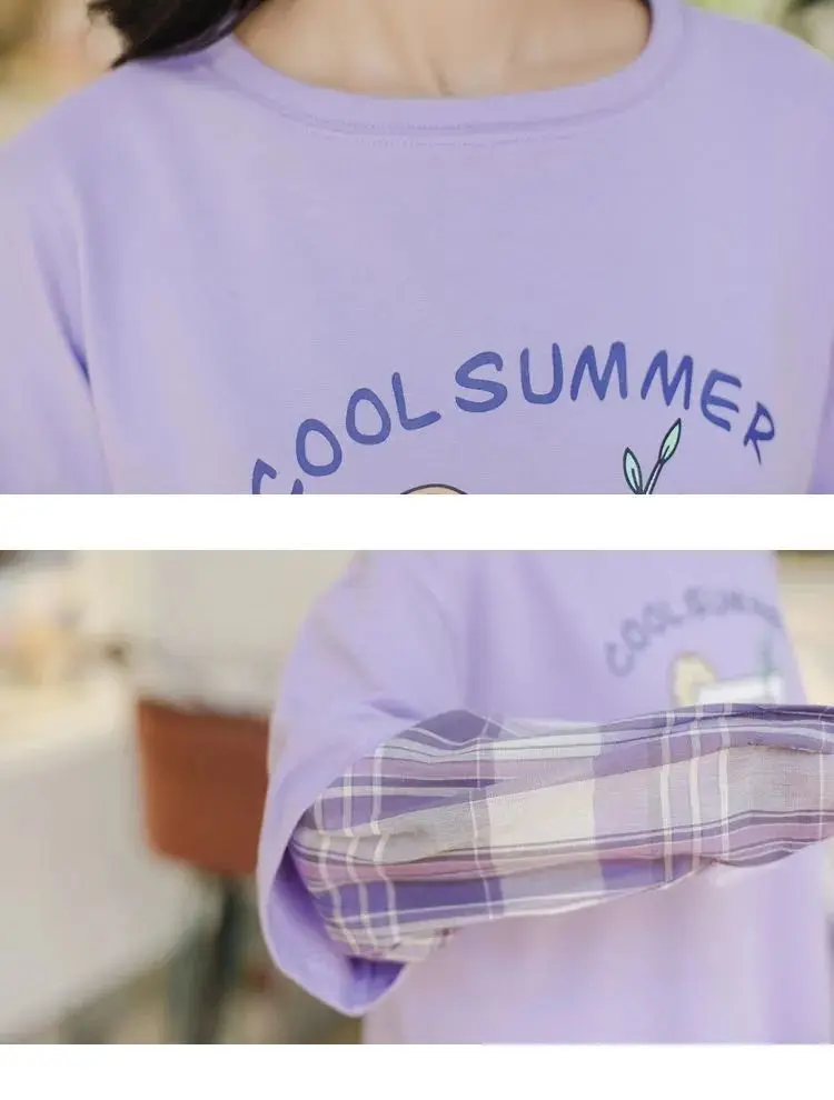Женская футболка, Лоскутная, весенняя, свободная, Студенческая, с милым принтом, Ulzzang, универсальная, мягкая
