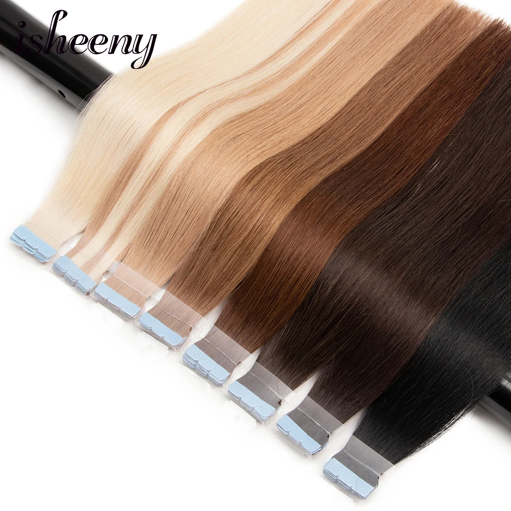 Isheeny лента в человеческих волосах для наращивания, женские удлинители для салона, 14 дюймов, прямые человеческие волосы Remy, 40 шт.
