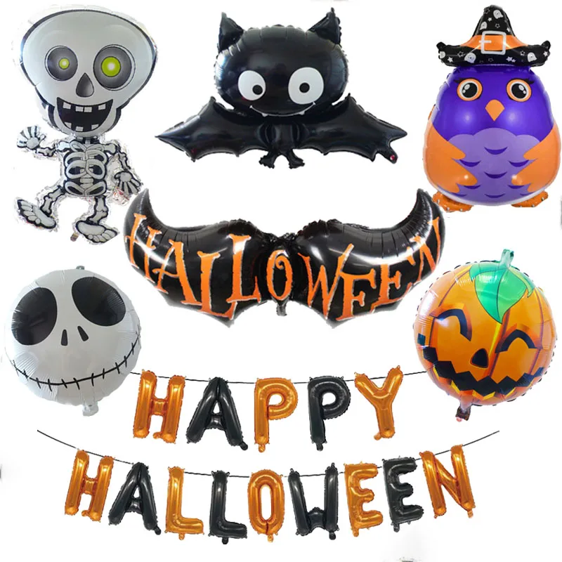 Воздушные шары из фольги в виде тыквы, паука, летучей мыши