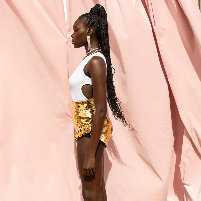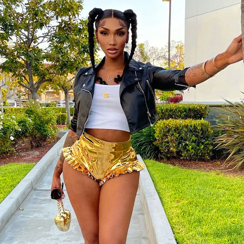 Женские блестящие бриджи с завышенной талией, однотонные кожаные короткие брюки с оборками, модель 2021 года, уличная война, золотистыеСеребристыерозовыекрасные