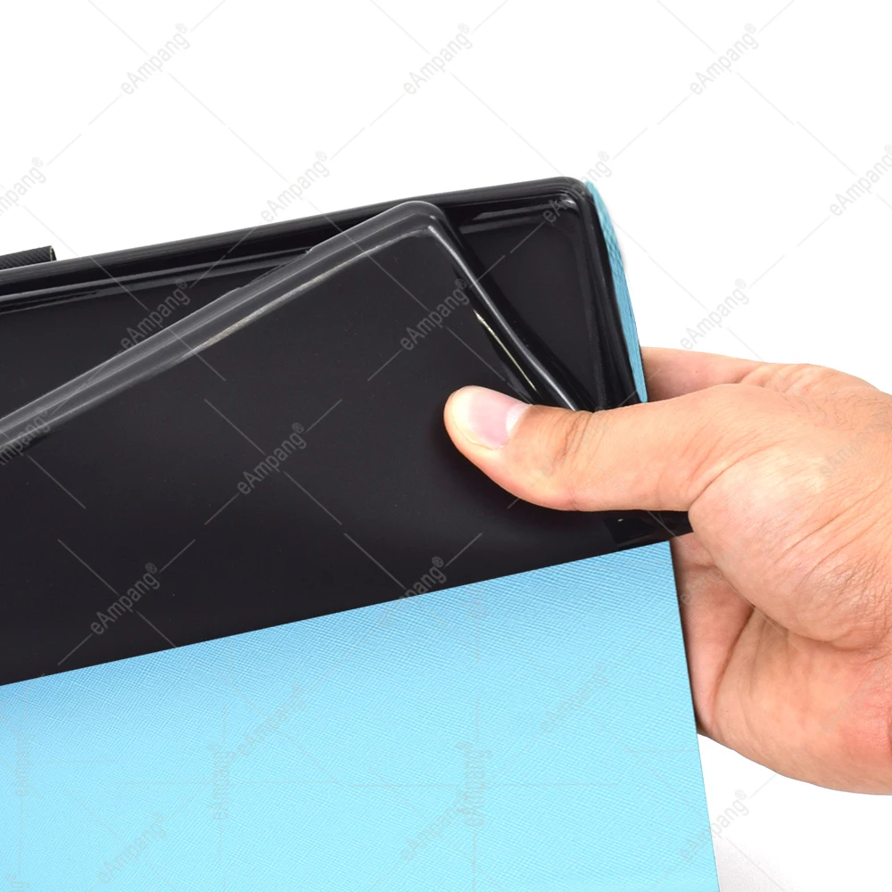 Деловой высококачественный кожаный чехол-книжка для планшета с подставкой и отделениями для карт.