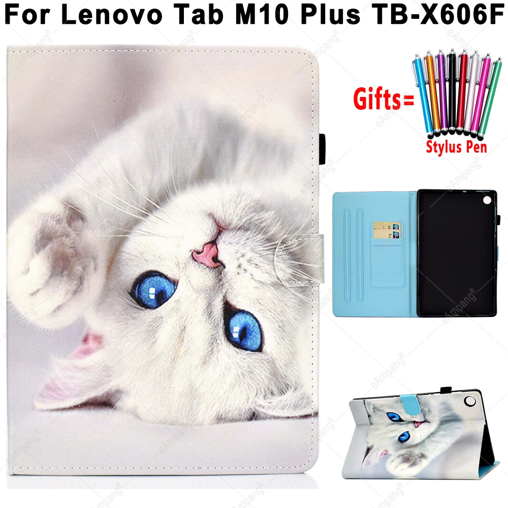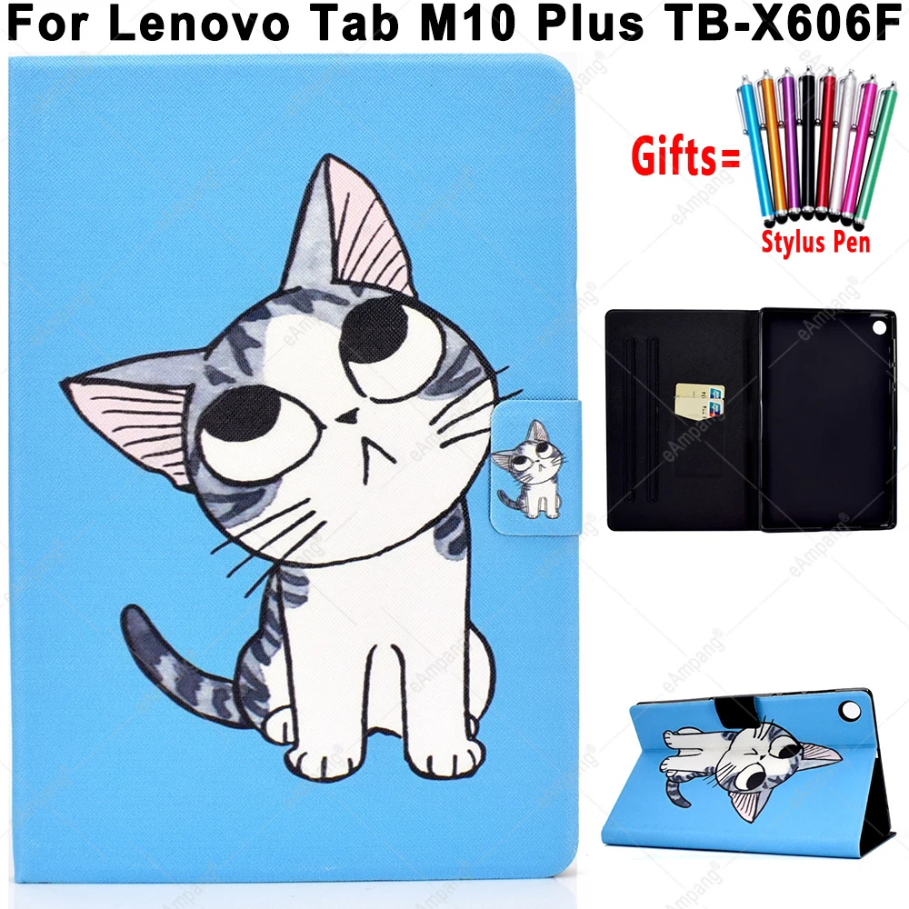 Чехол с милым котом для Lenovo Tab M10 Plus 10,3 ТБ X606F, чехол из искусственной кожи, мягкий ударопрочный смарт-чехол для Lenovo M10 Plus