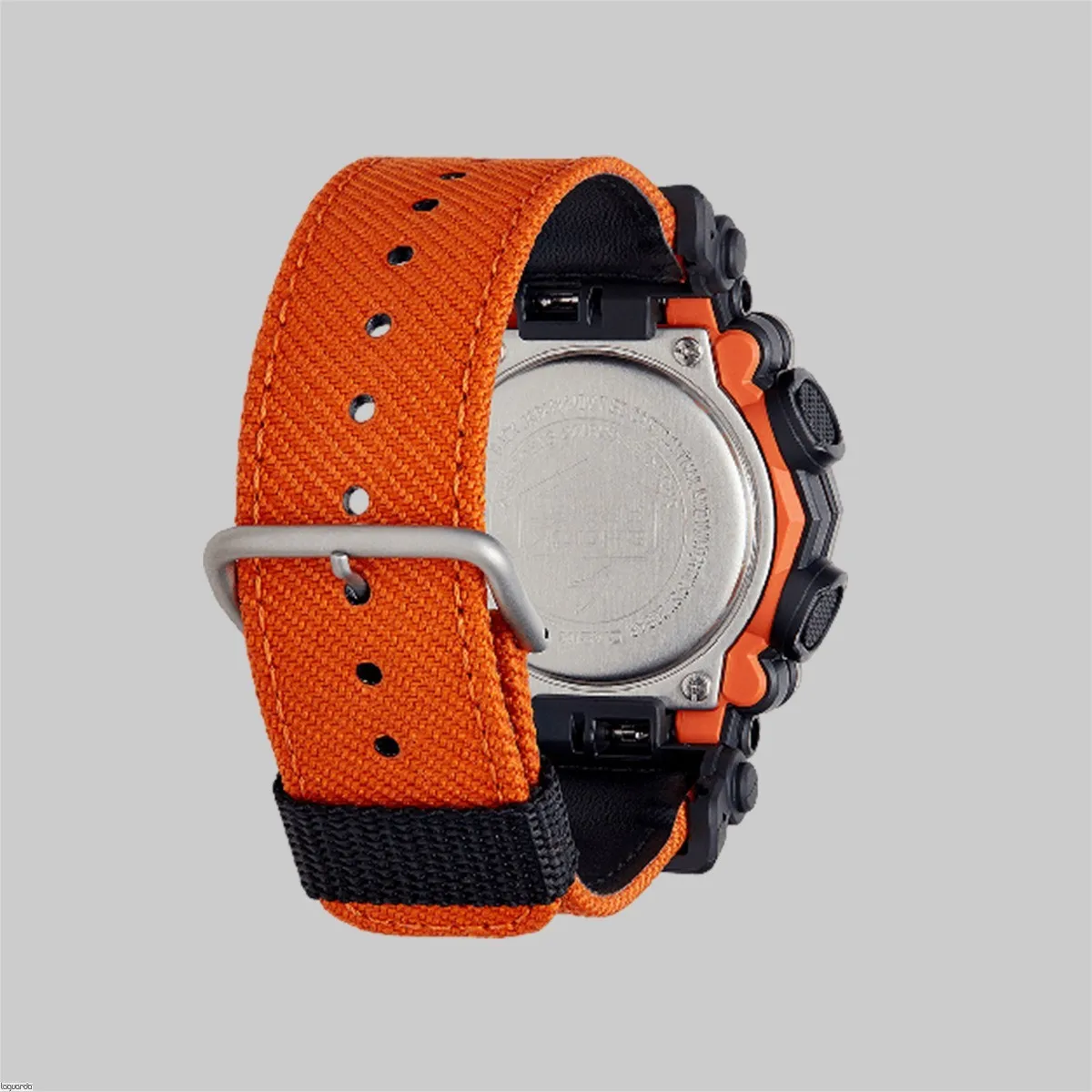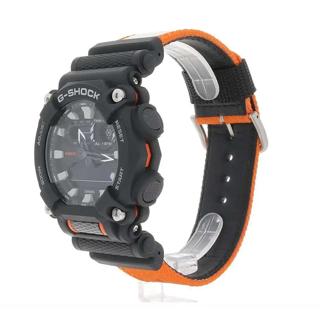 Бренд: Casio Пол: мужские Тип: кварцевые Коллекция: G-SHOCK Водозащита: WR 200 Материал браслета: тканевый ремешок Материал корпуса: пластик Размер: 49,5 х 52,8 мм Вес: 65 г Подсветка: Neobrite, светодиодная Стекло: минеральное