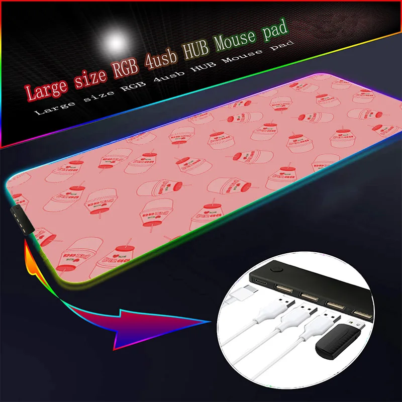 Симпатичный ярко-розовый RGB 4-портовый светящийся коврик для мыши с клубничкой, красивый коврик для мышки в стиле аниме, коврик для мыши, игровой коврик для мыши, игровой коврик для мыши