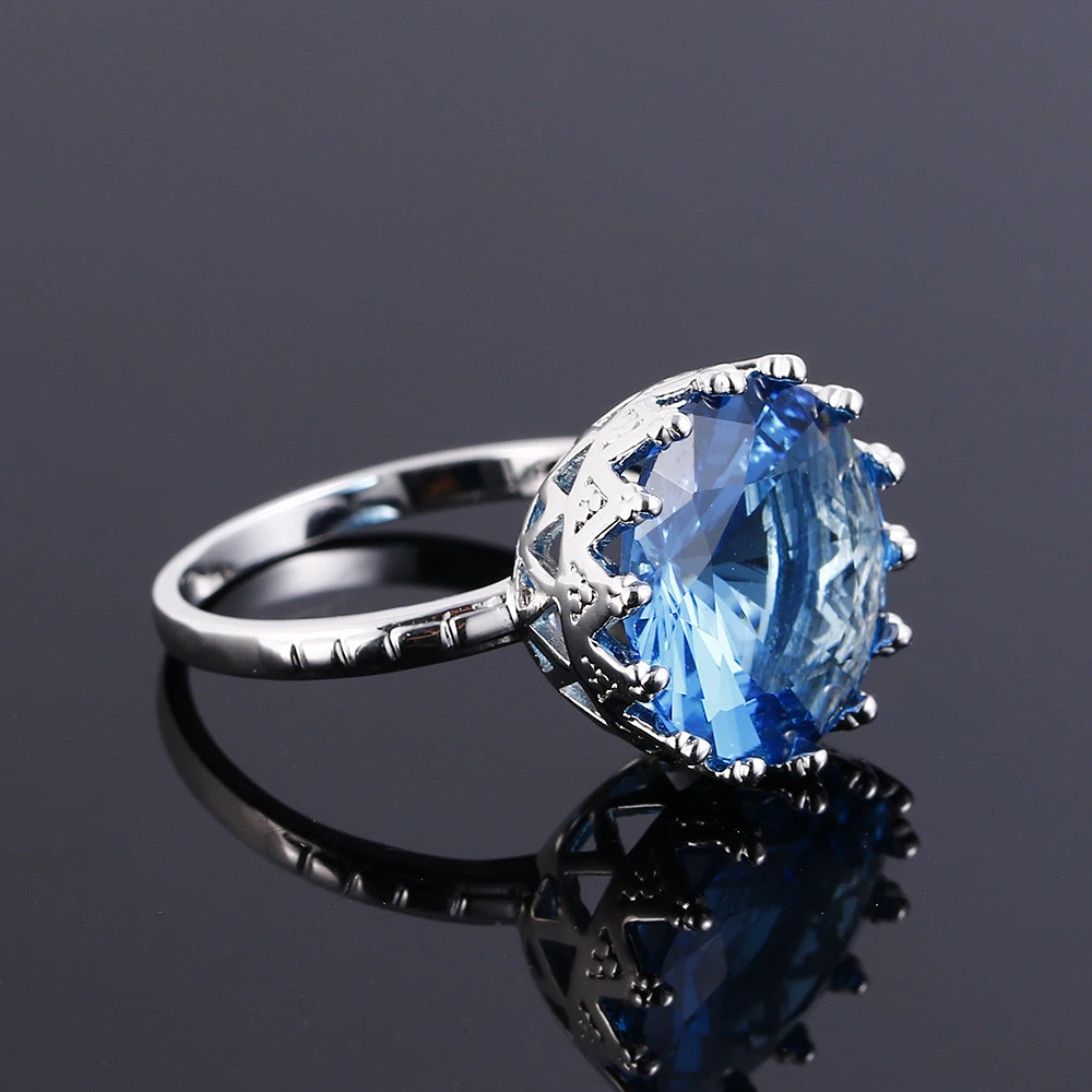 Новые модные серебряные кольца 15 мм для женщин с голубыми аквамариновыми камнями 925 серебряные ювелирные изделия вечерние Кольца Рождественский подарок Размер 6 7 8 9 10