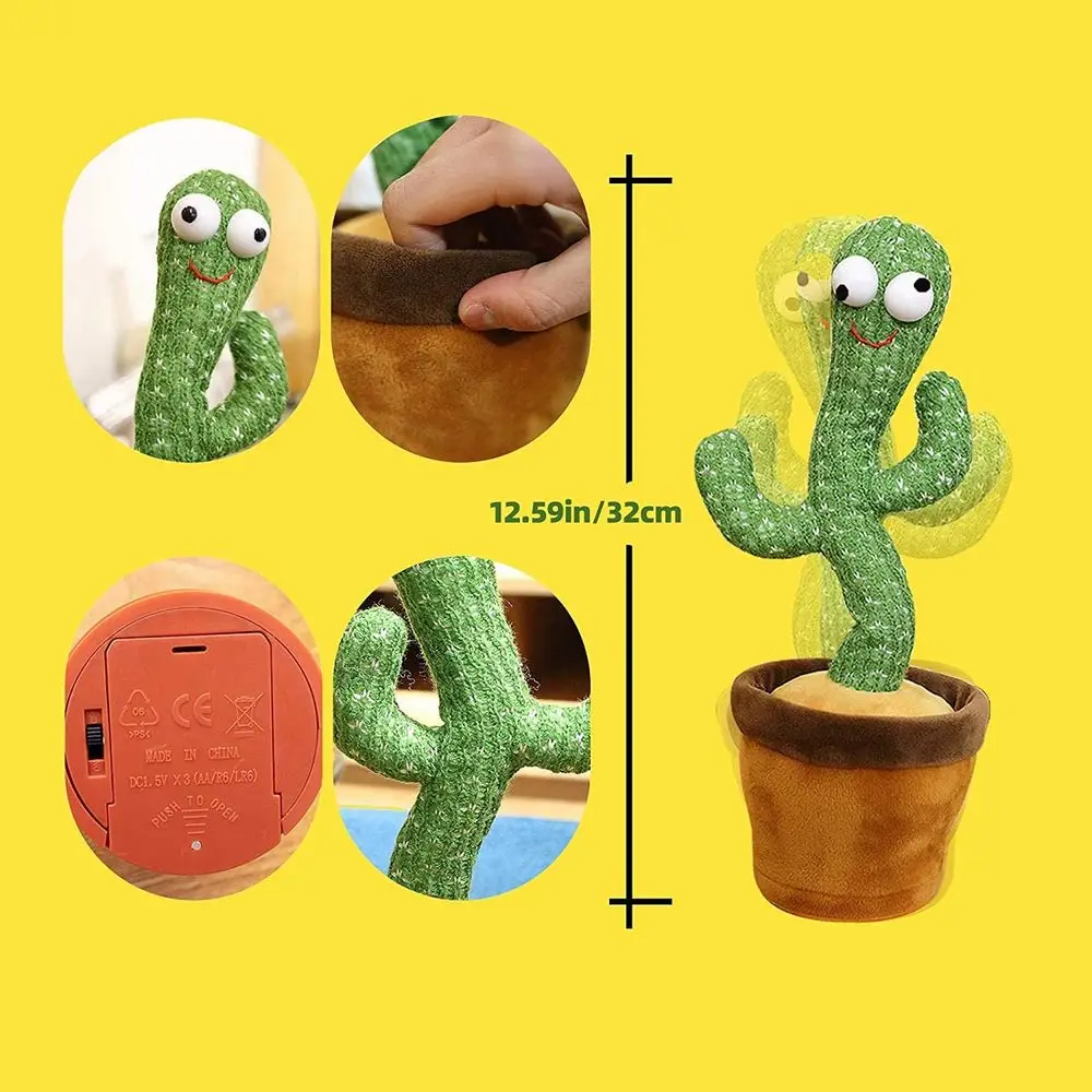Простота использования: Загрузите батарейки и нажмите кнопку, плюшевая игрушка кактус будет качаться и петь веселую песню. Работает от батареи; Требуются 3 батарейки АА (не входят в комплект)