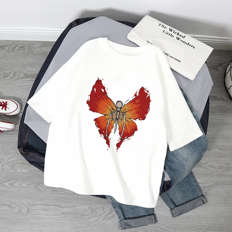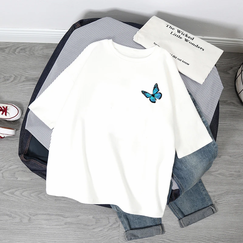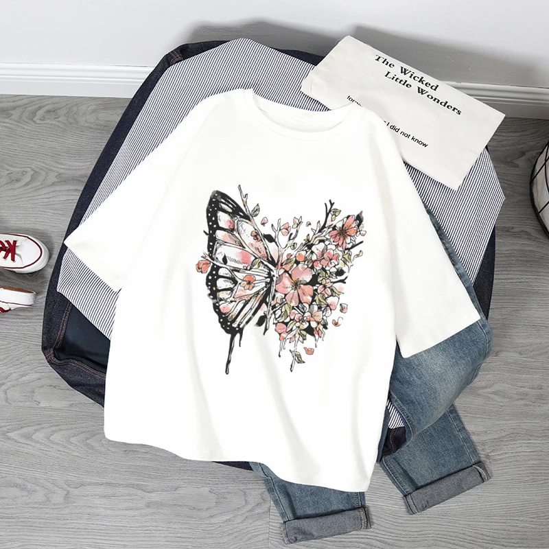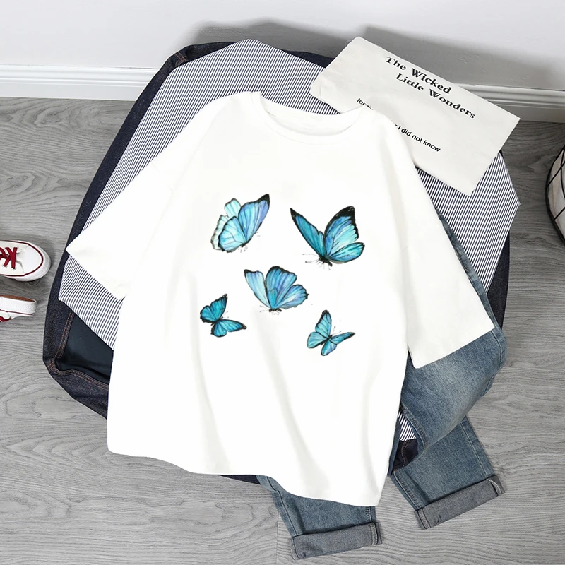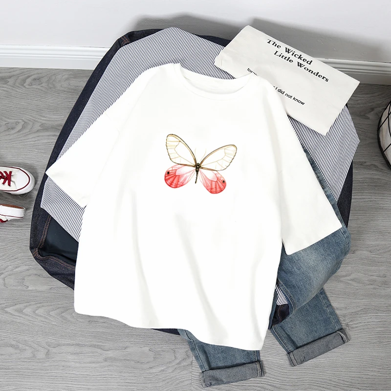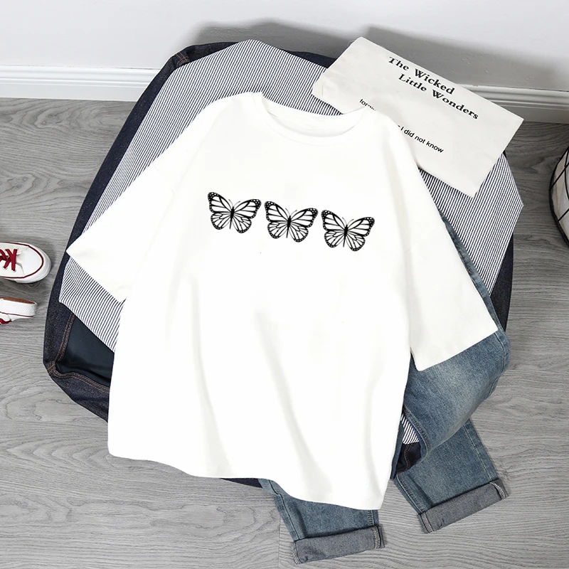 Футболка женская в стиле оверсайз с принтом бабочки, Модный повседн...