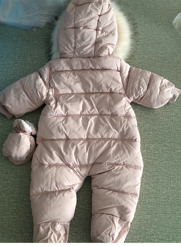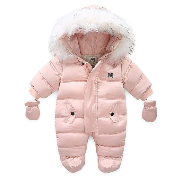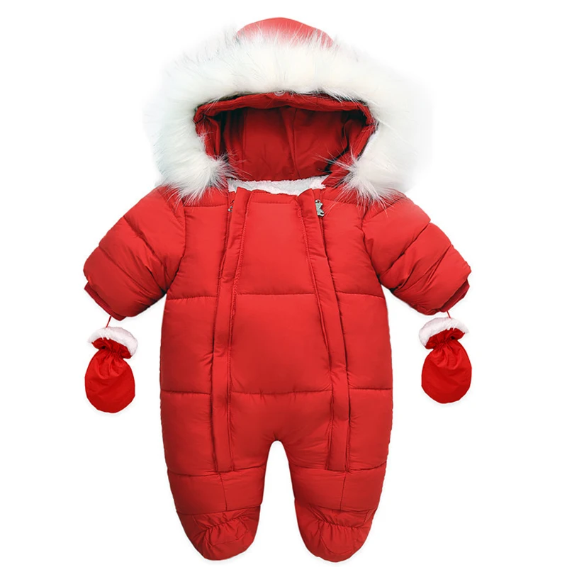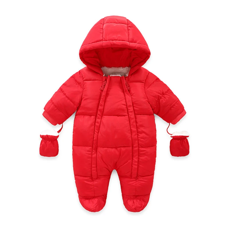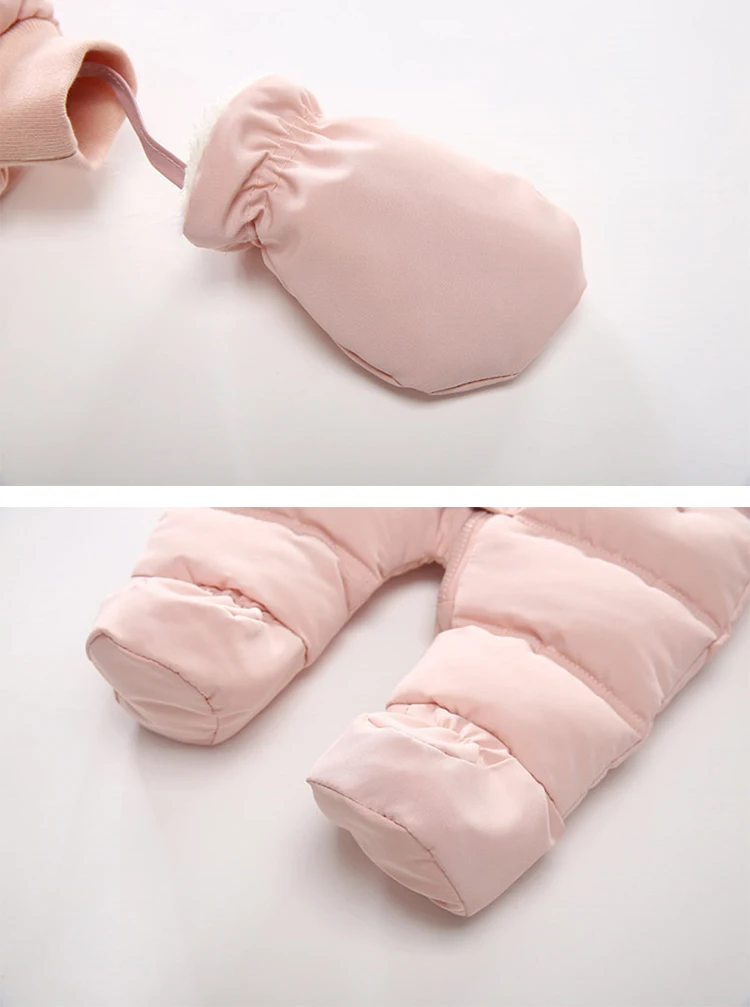 Зимний комбинезон с перчатками для новорожденных девочек от 0 до 24 месяцев, хлопковая зимняя одежда для мальчиков Детское пальто с капюшоном и рисунком для маленьких девочек