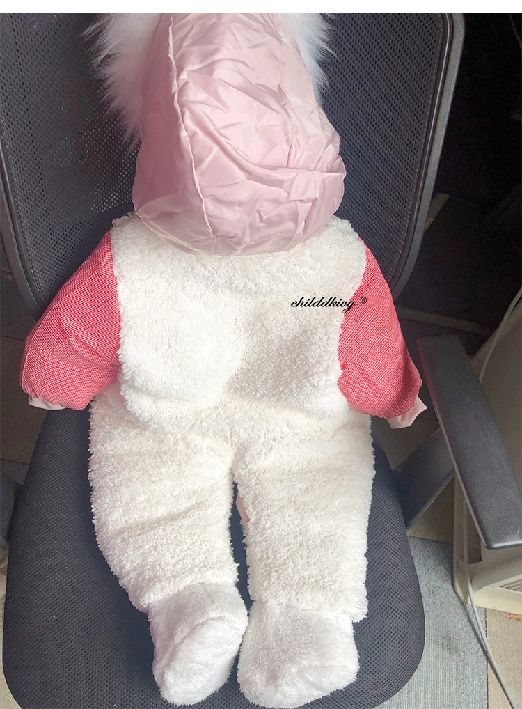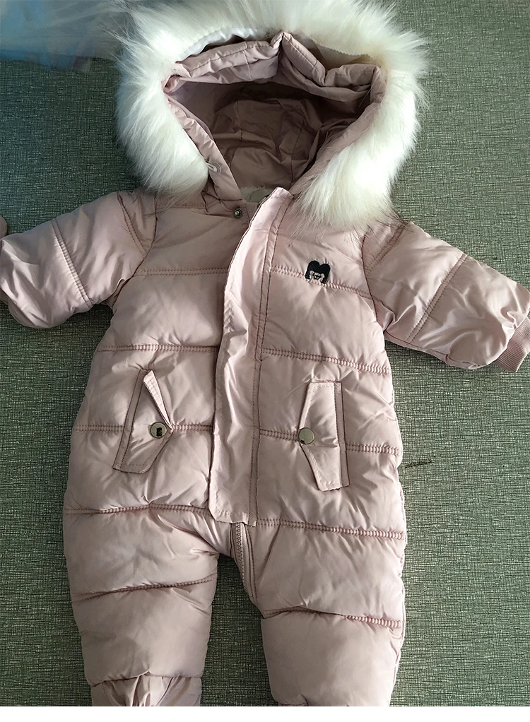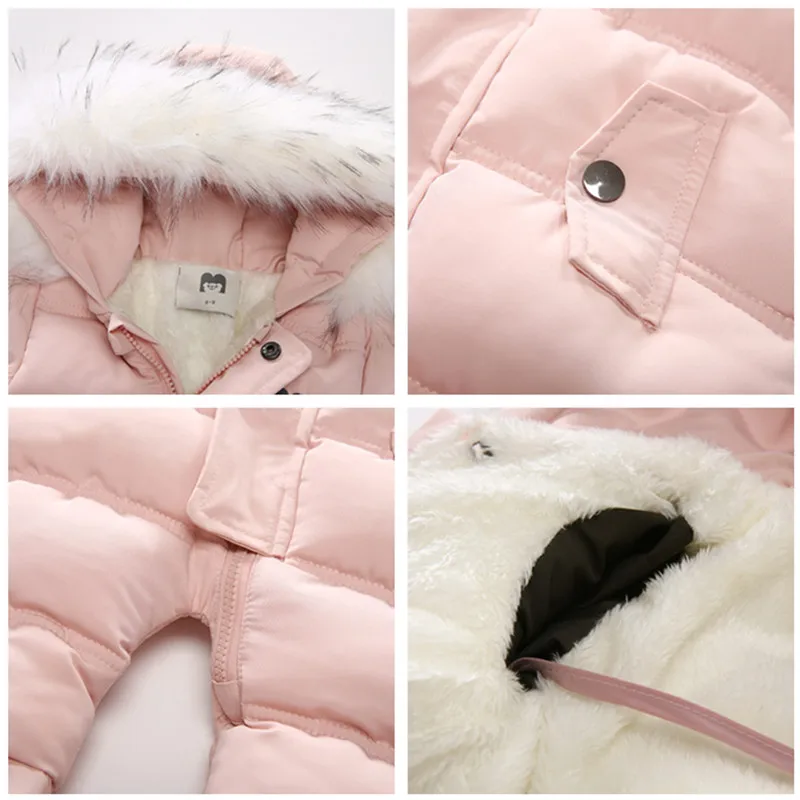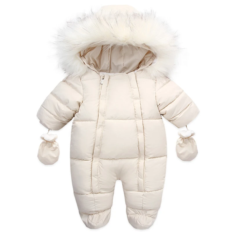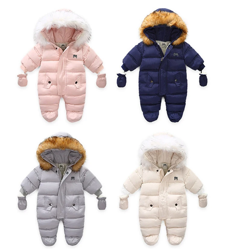Зимний комбинезон с перчатками для новорожденных девочек от 0 до 24 месяцев, хлопковая зимняя одежда для мальчиков Детское пальто с капюшоном и рисунком для маленьких девочек