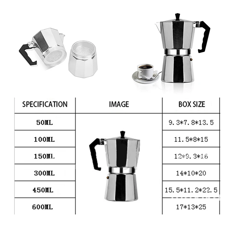 Алюминиевый кофейник для мокко 100150300450600 мл, быстрая варочная...