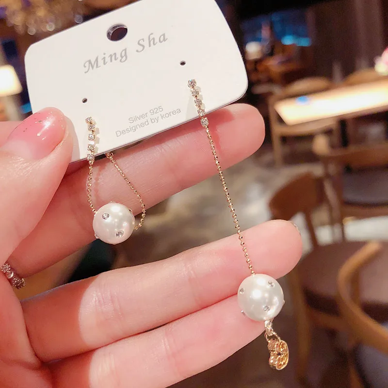 Женские серьги-подвески с белым жемчугом, корейские, богемные, золо...