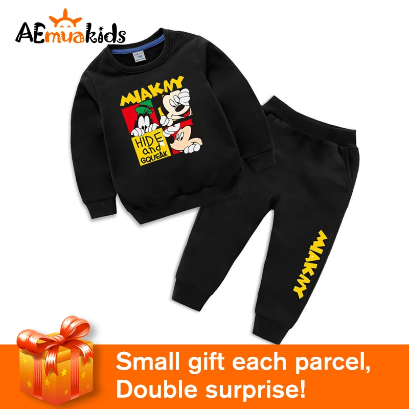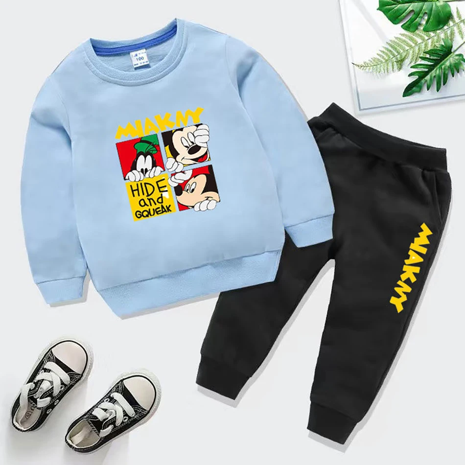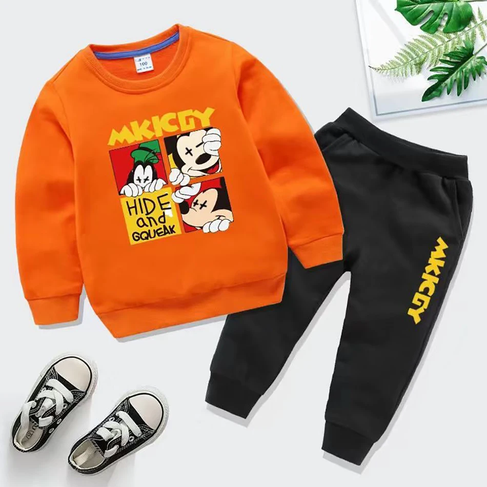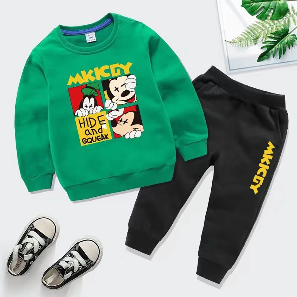 Симпатичный комплект одежды Микки Минне для маленьких девочек и мальчиков, хлопковый топ + штаны, костюм из 2 предметов, Детские весенне-осенние спортивные костюмы, одежда