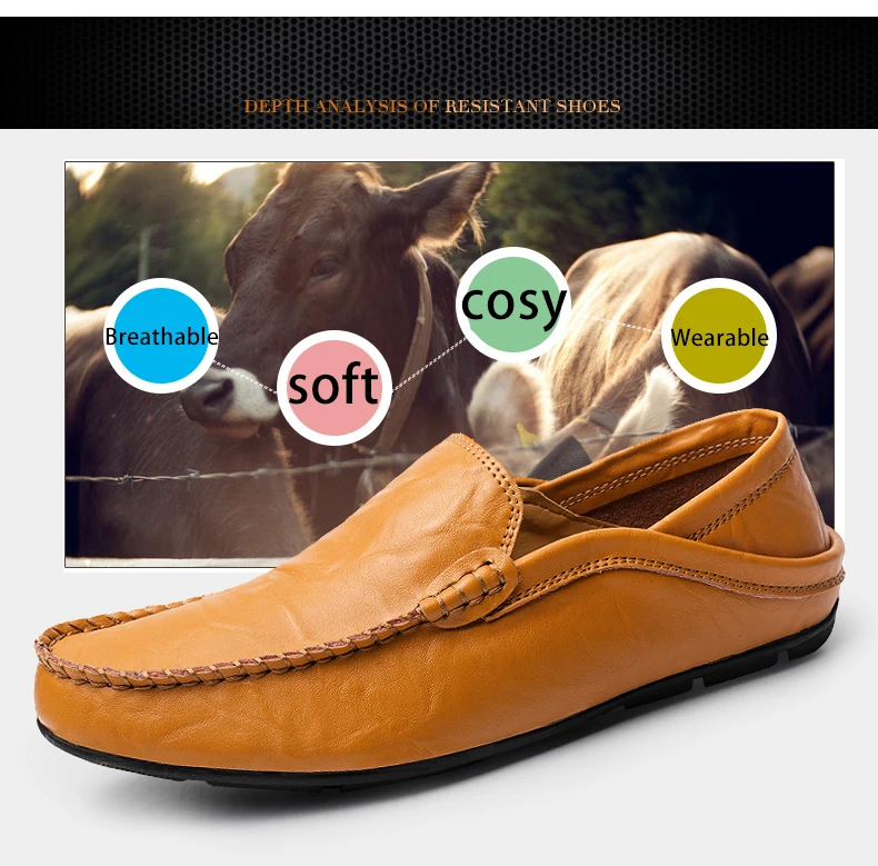 Модные кожаные Повседневные Дышащие лоферы из натуральной кожи мокасины удобная мужская водонепроницаемая обувь на плоской подошве