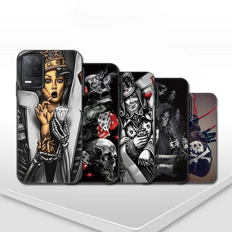 Чехол с черепом для Realme V13 чехол s для Realme X7 Pro X50 X2 XT V5 Q U1 Narzo 20 Pro Чехол черный силиконовый чехол для телефона