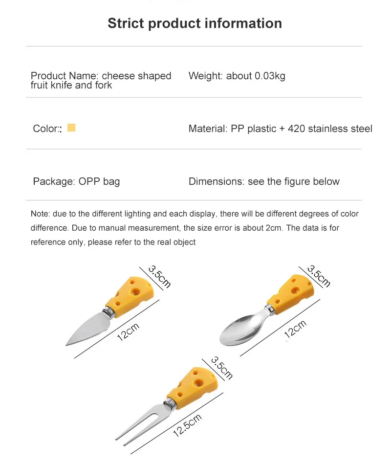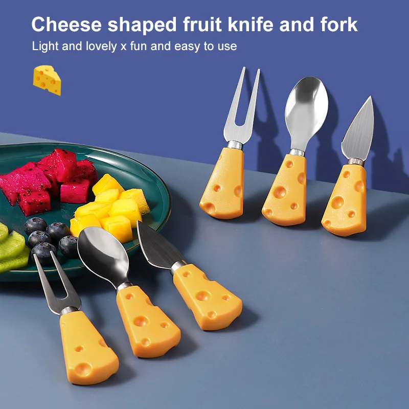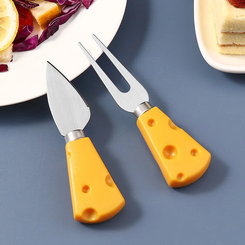 2. Нож и вилка в форме сыра, материал из нержавеющей стали, удобный на ощупь.