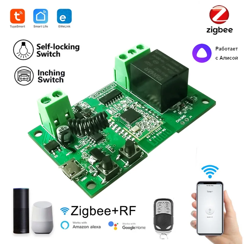 Релейный модуль DC5-32v ZigBee, выключатель света с дистанционным управлением, работает с Alexa Google Home Tuya Smart Hub Gateway Bridge Яндекс Алисы