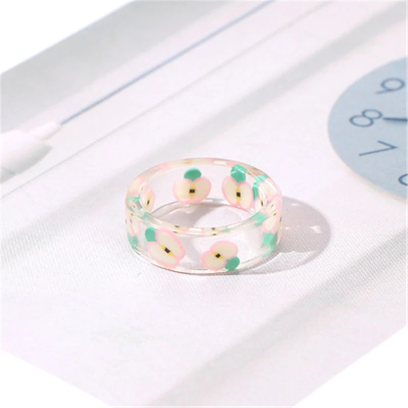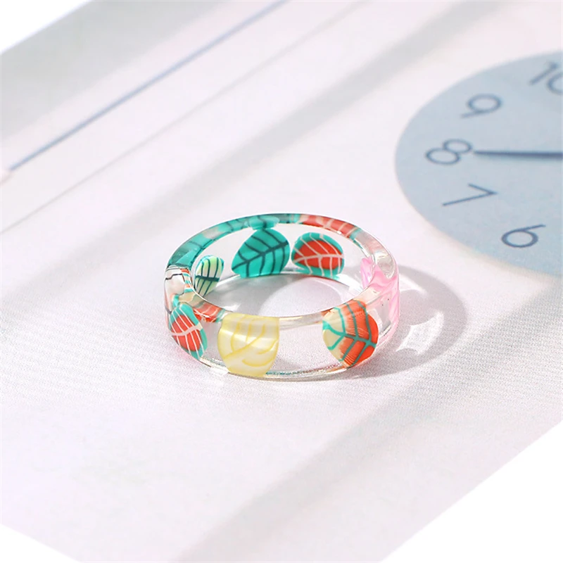 Кольцо в форме листка, Женское кольцо со смайликом, свадебные украшения, подарок для друзей, корейская мода, фрукты из смолы