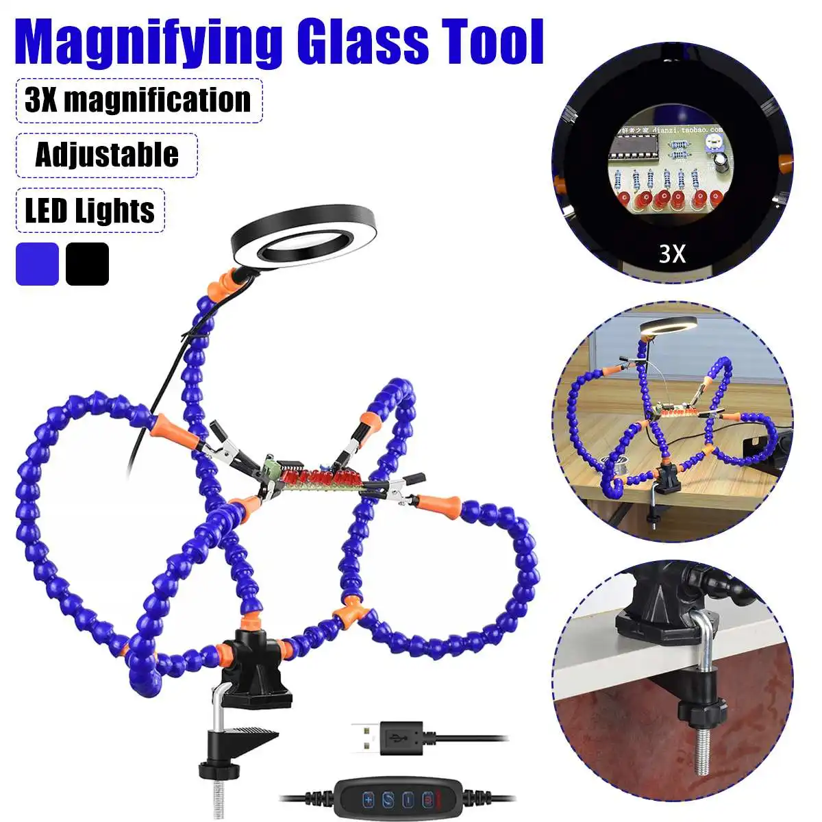 Настольный зажим PCB сварочный кронштейн 3X увеличительное стекло, светодиодный сварочный помощник для лампы, Гибкий ручной инструмент для сварки