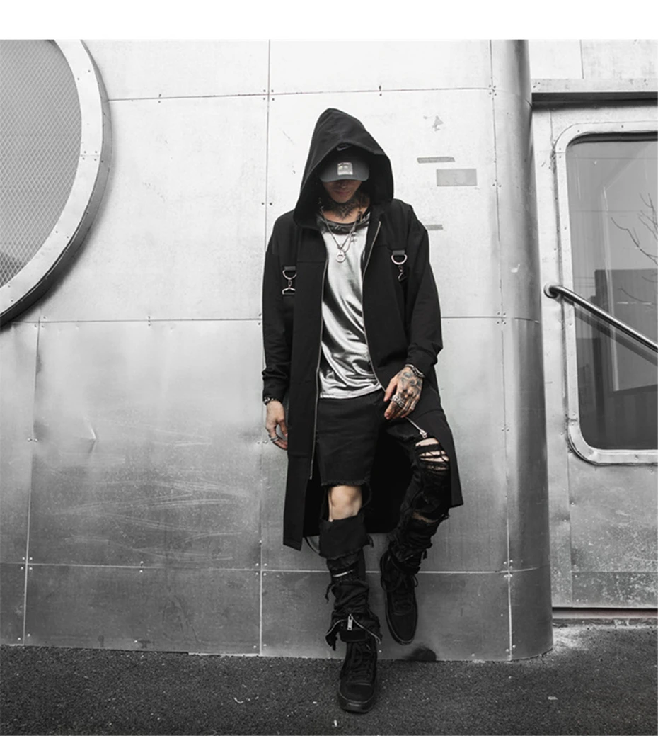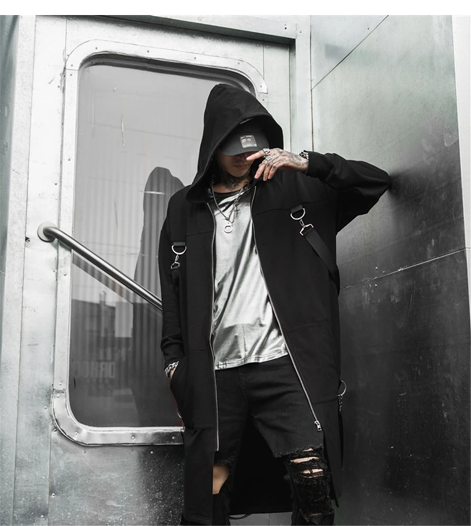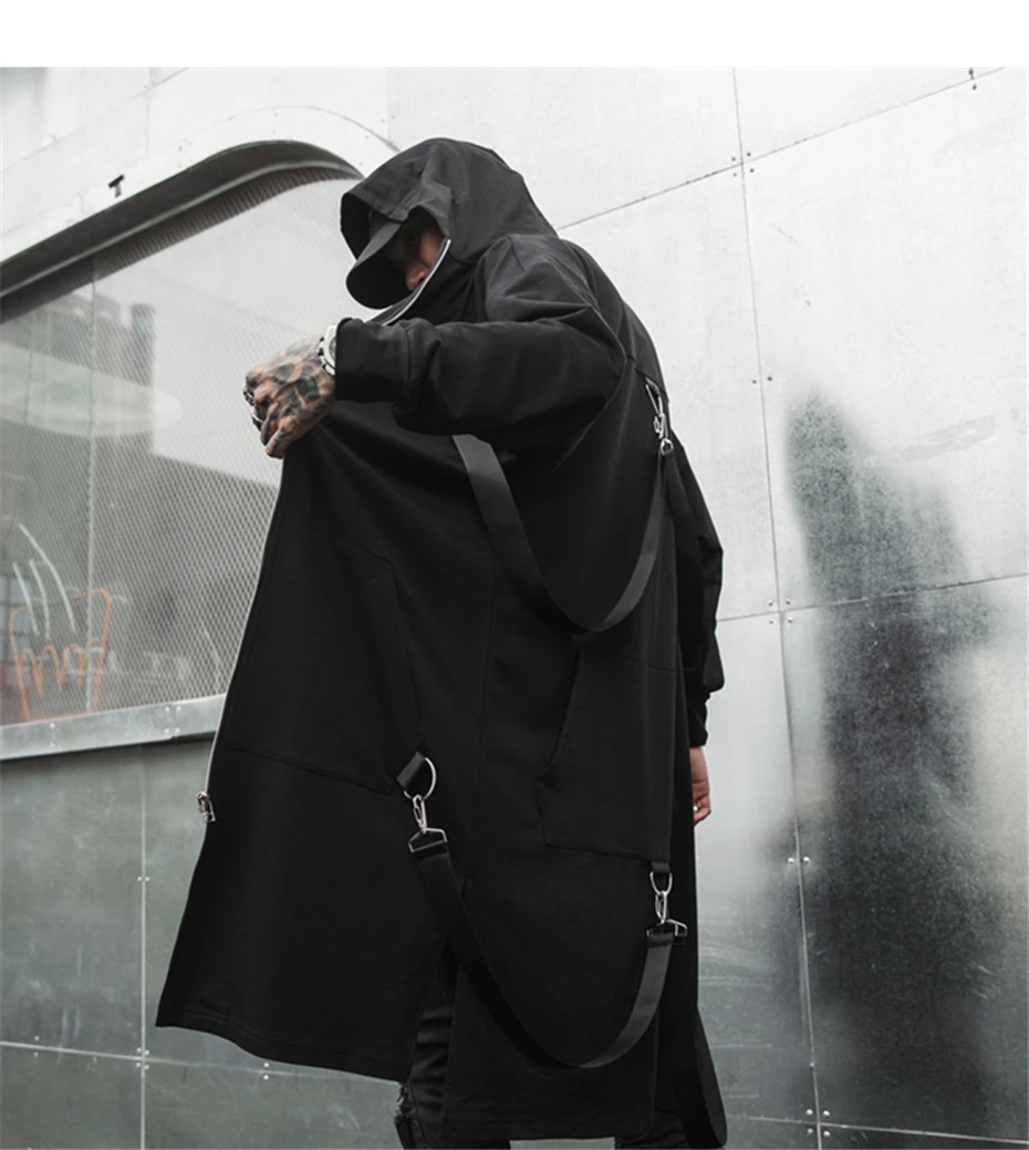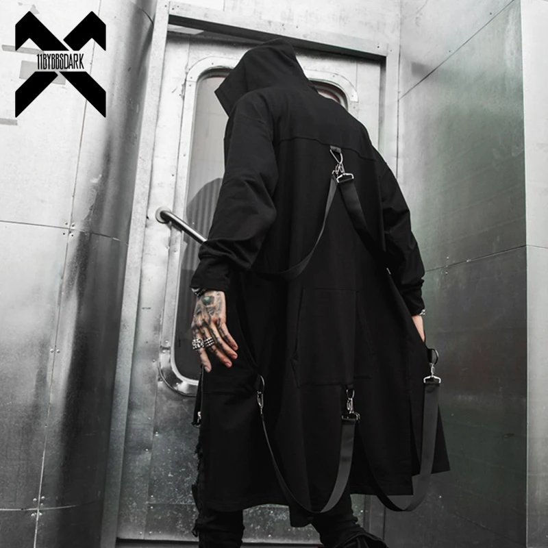 Мужская плащ с волшебника 11 BYBB'S DARK, плащ-ветровка с лентами в готическом стиле, панк, уличная одежда, длинная куртка, пальто с капюшоном WB242