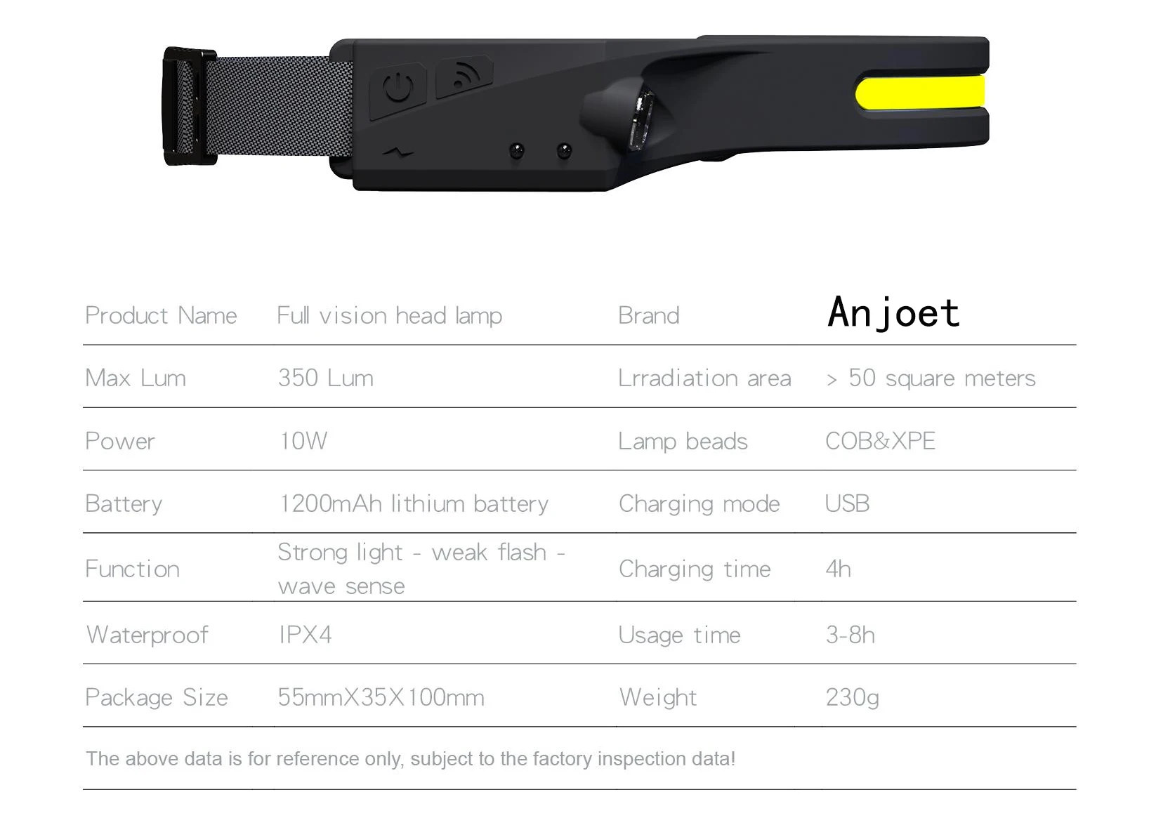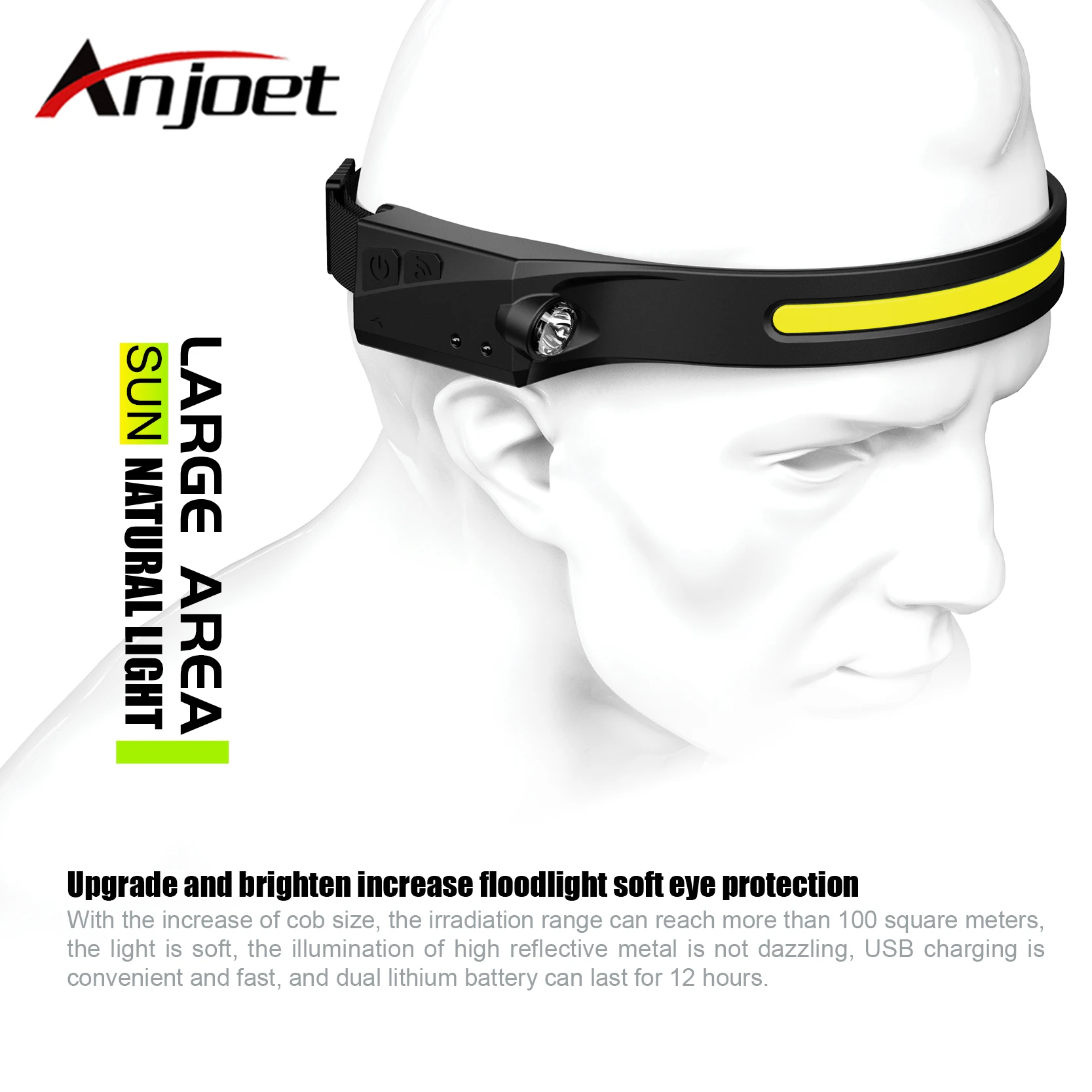 Индукционная Светодиодная лампа Anjoet, налобный фонарь для езды лм, 1200 мА ч, USB Перезаряжаемый фонарик для охоты, 3 режима Предупреждение ный фонарик