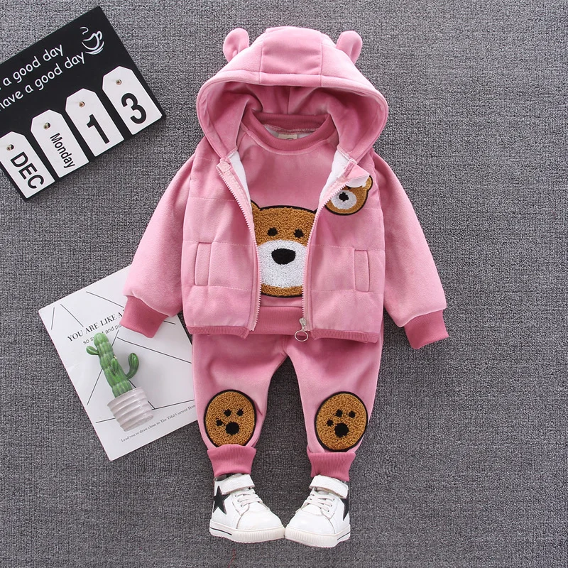 3 шт.компл., Детская Хлопковая футболка с капюшоном и штаны