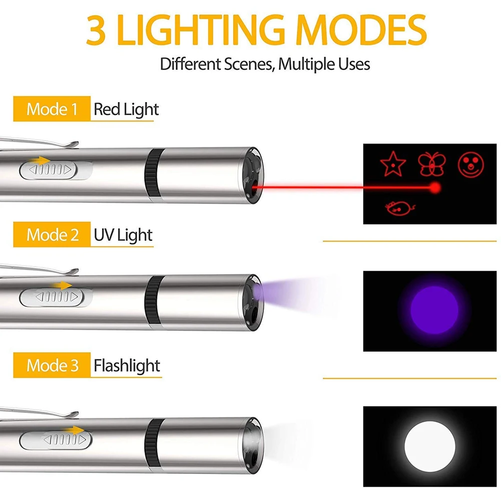 Забавная Лазерная игрушка для домашних животных и кошек, 5 мВт, красная точечная лазерсветильник шка, креативная лазерная указка, лазерная ручка, Интерактивная светодиодный шка, светодиодная УФ-ламсветильник с USB