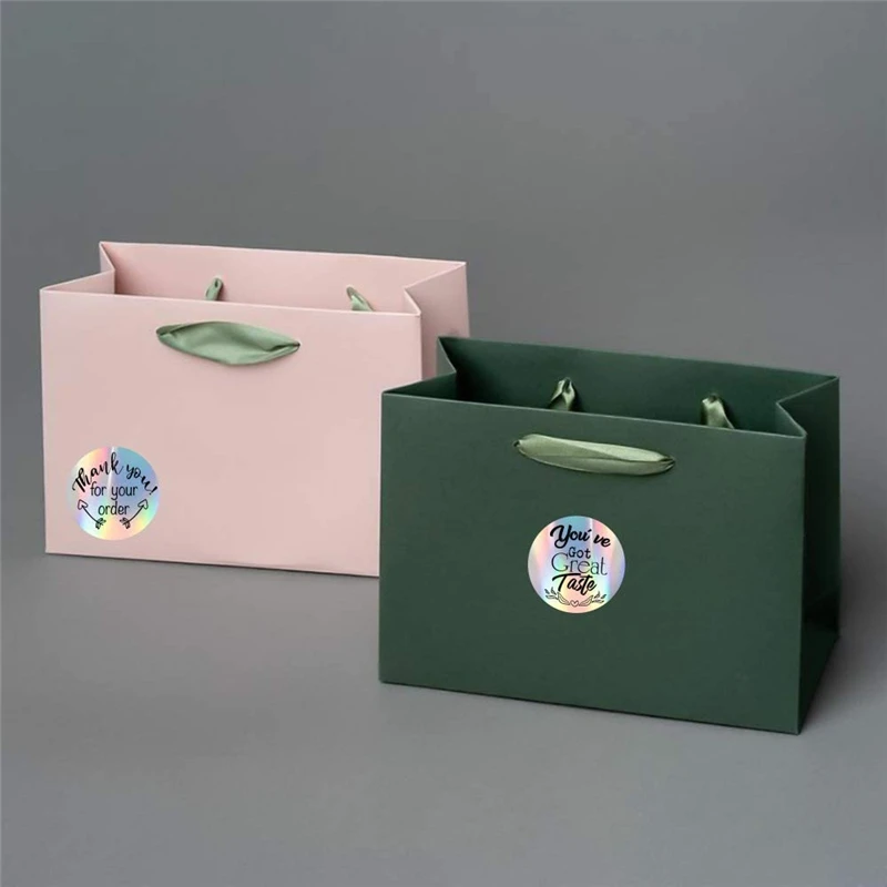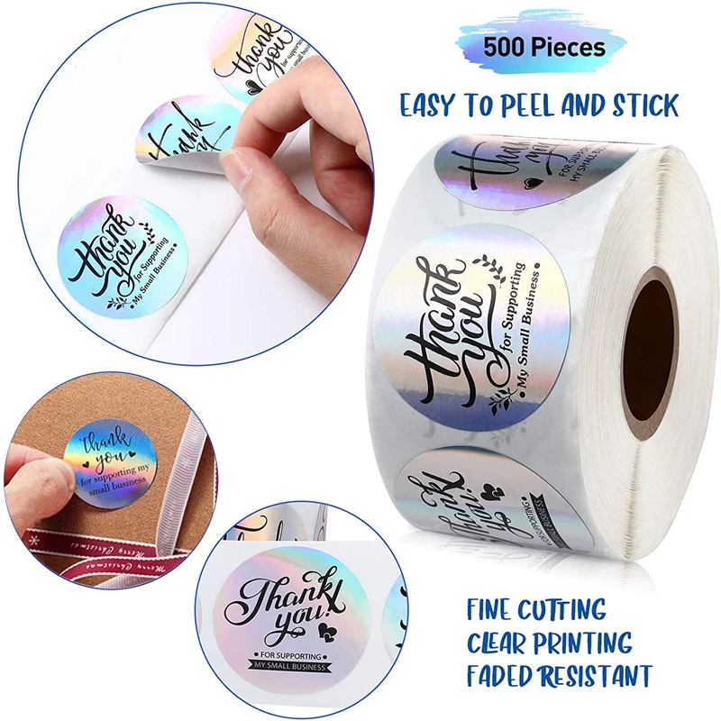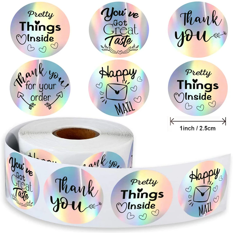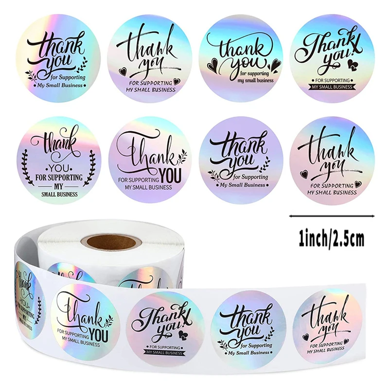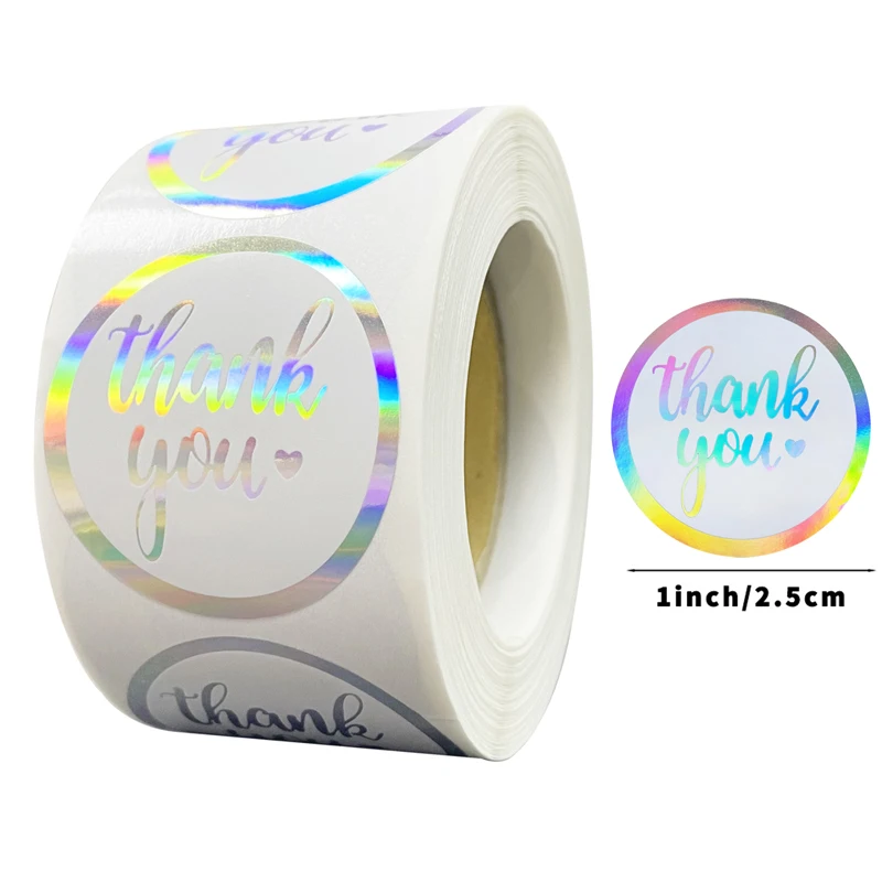 500 шт., различные стили, лазерная наклейка «спасибо», круглые наклейки, магазин, подарочная упаковка, 1 дюйм, радужная голографическая наклейка