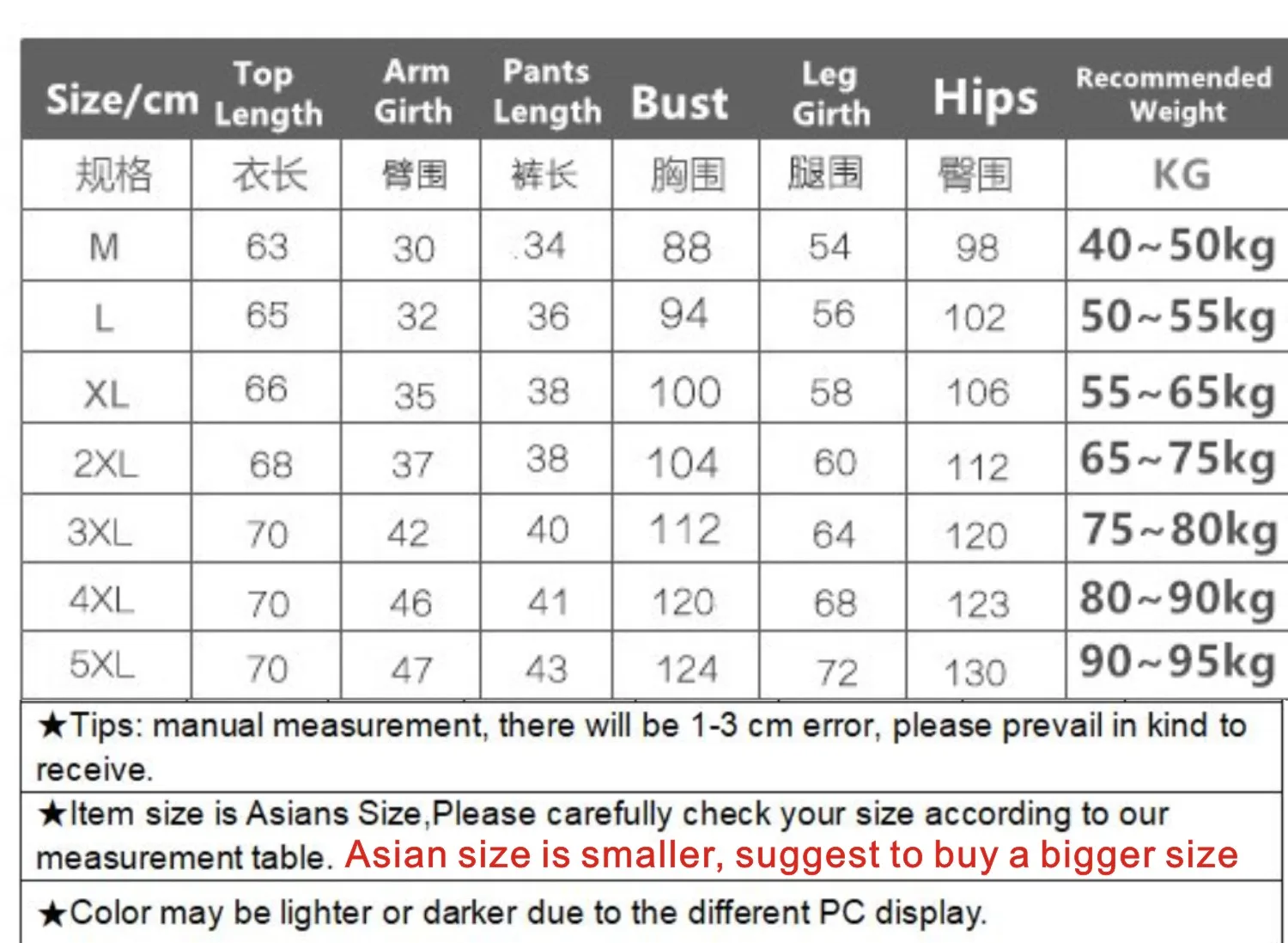 SizeM, L, XL, XXL, XXXL, XXXXL, XXXXXL