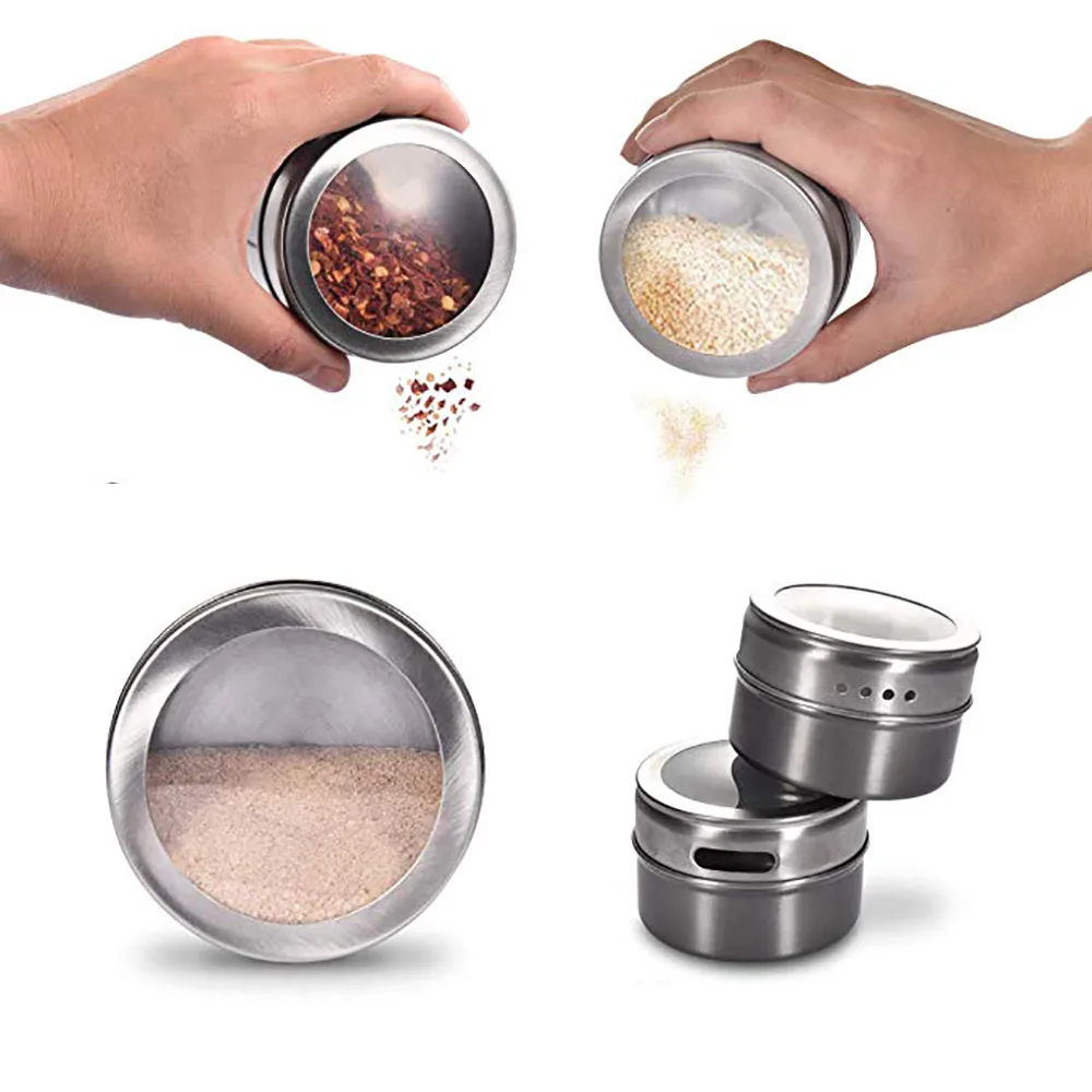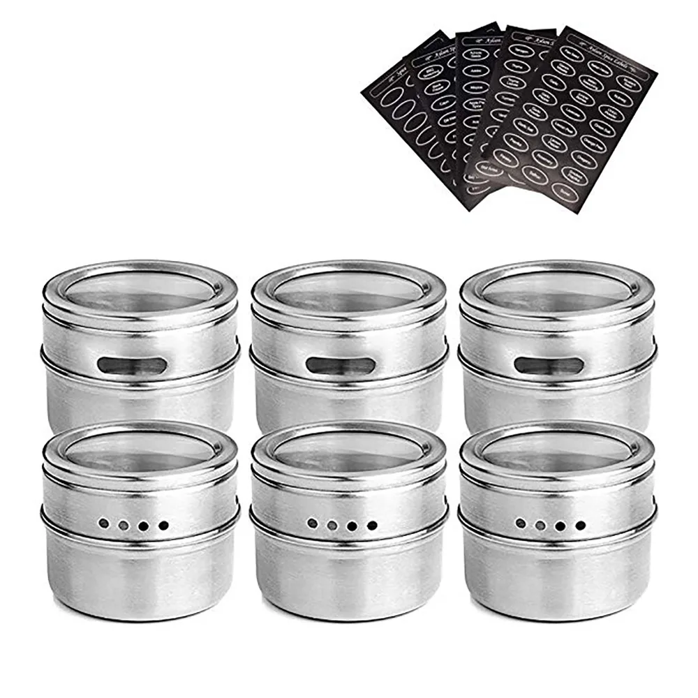 6PCS магнетический специй Набор банок с наклейками Нержавеющаясталь...