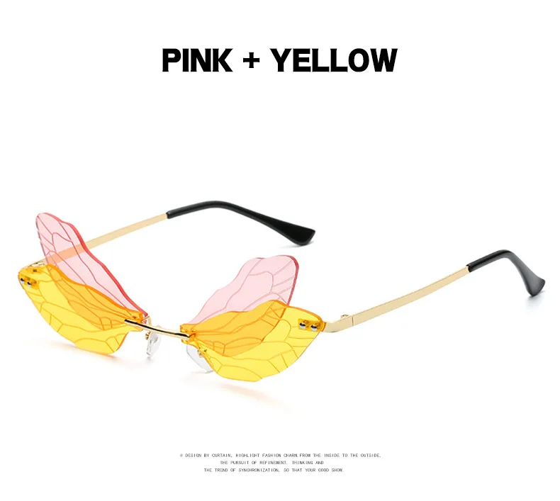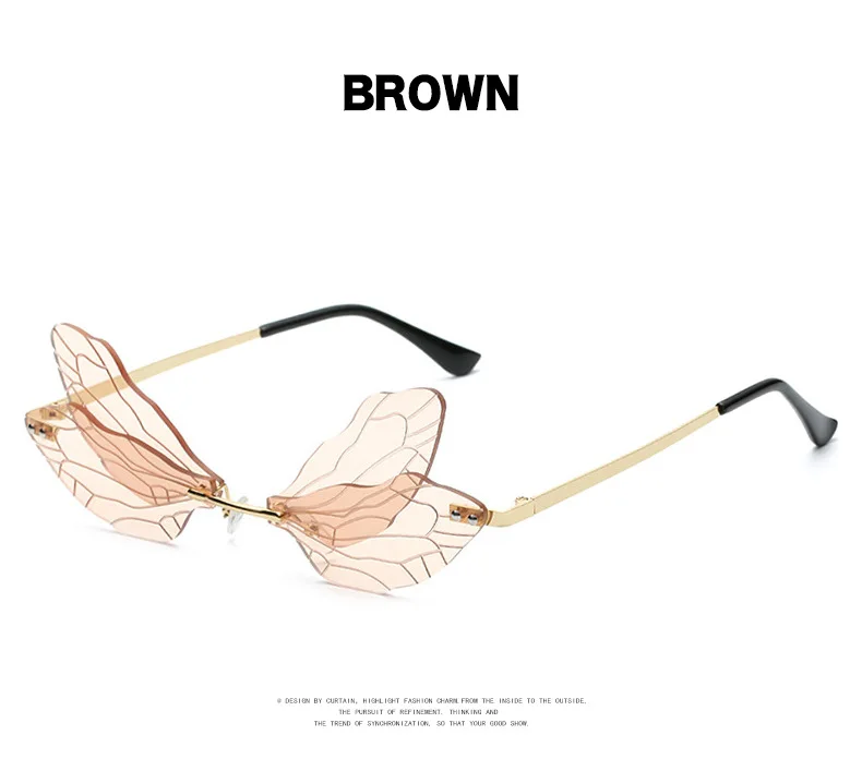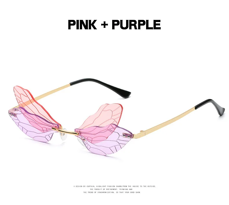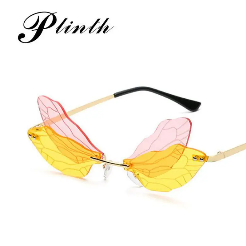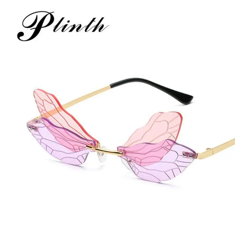 Солнцезащитные очки женские, без оправы, с металлической бабочкой