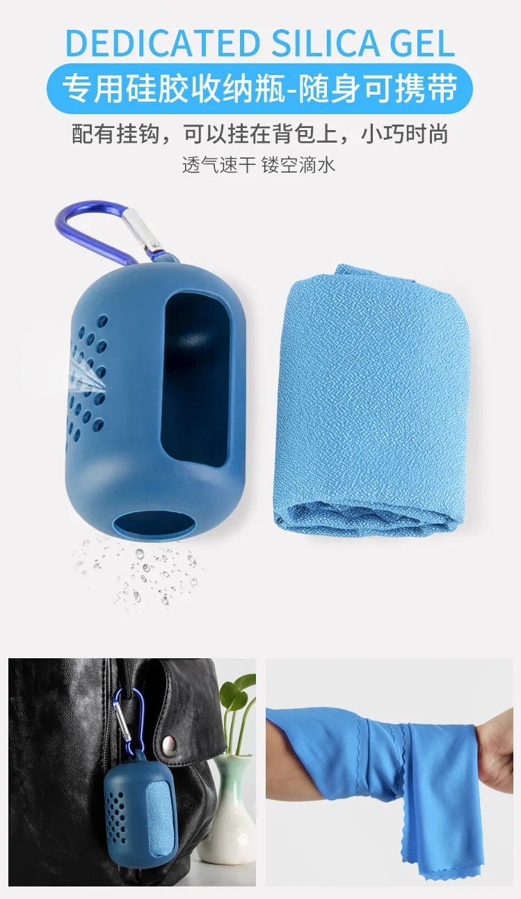 Быстрая Сушка микрофибры полотенце, полотенце для спорта, бега, кемпинга, портативное полотенце для фитнеса, тренажерного зала, йоги, пляжа, путешествий, силиконовая сумка