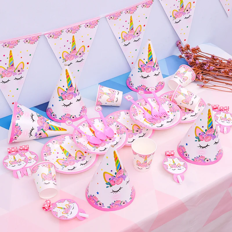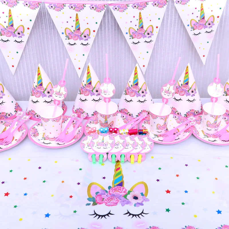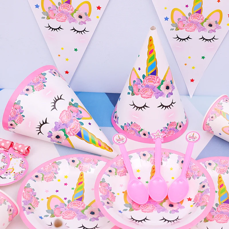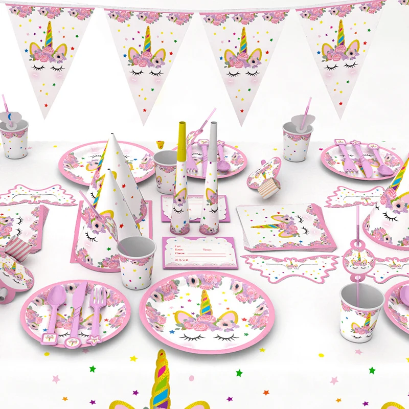 Одноразовая посуда в виде единорога для украшения дня рождения
