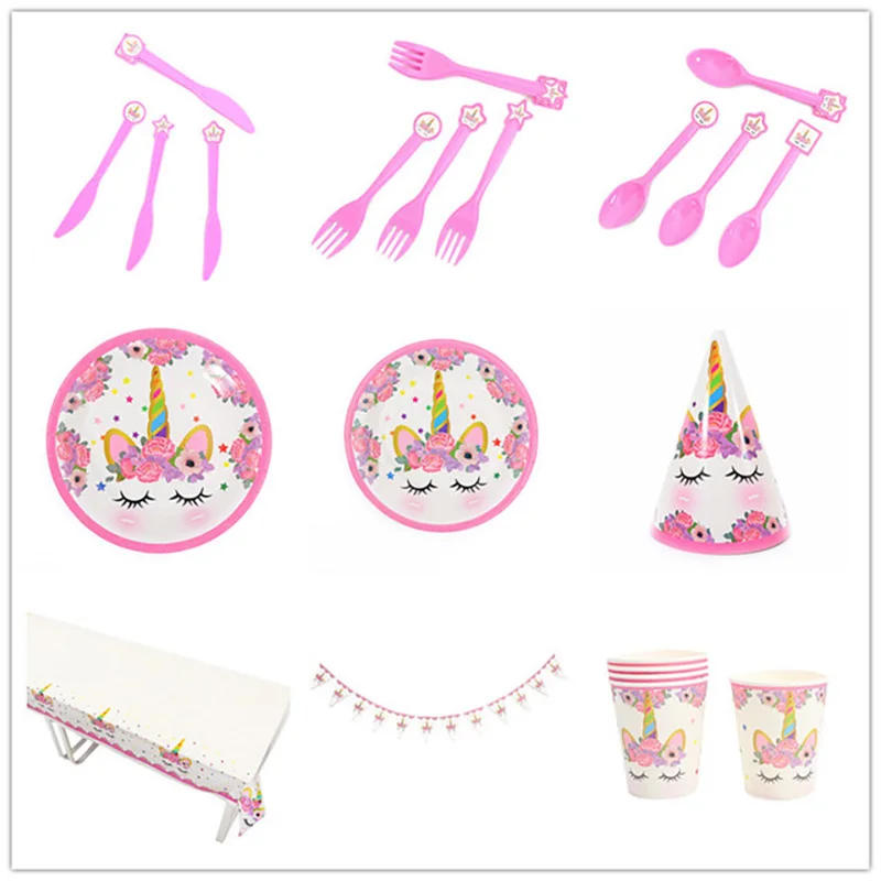 Единорог украшение на день рождения вечерние одноразовые столовые приборы набор бумажных тарелок детский душ Свадебные вечерние принадлежности для дня рождения