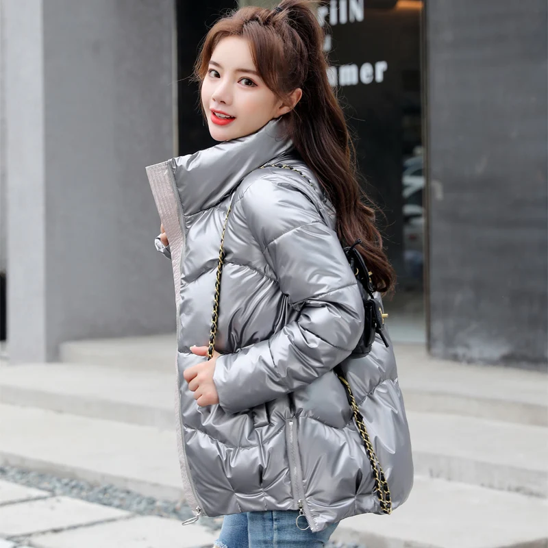 Женская хлопковая куртка, блестящая яркая зимняя куртка для женщин,...