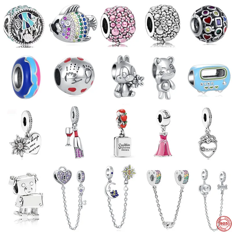 Подходящий оригинальный Шарм-браслет, подлинный телефон, серебряный замок, кошка, собака, безопасная лента, бусина для изготовления женского берелока, новинка 2021