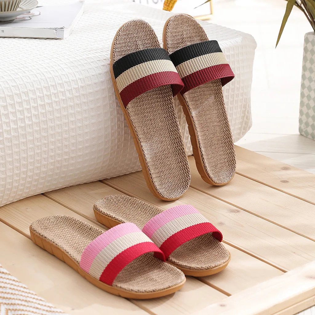Женские домашние Нескользящие тапочки, домашние льняные шлепанцы, Летние повседневные шлепанцы, домашние шлепанцы, пляжная обувь