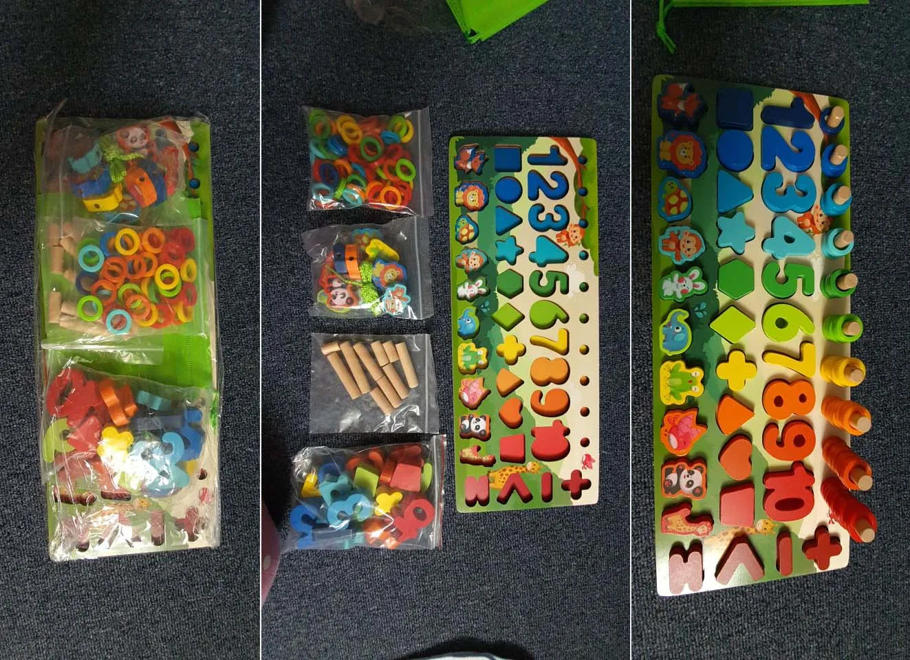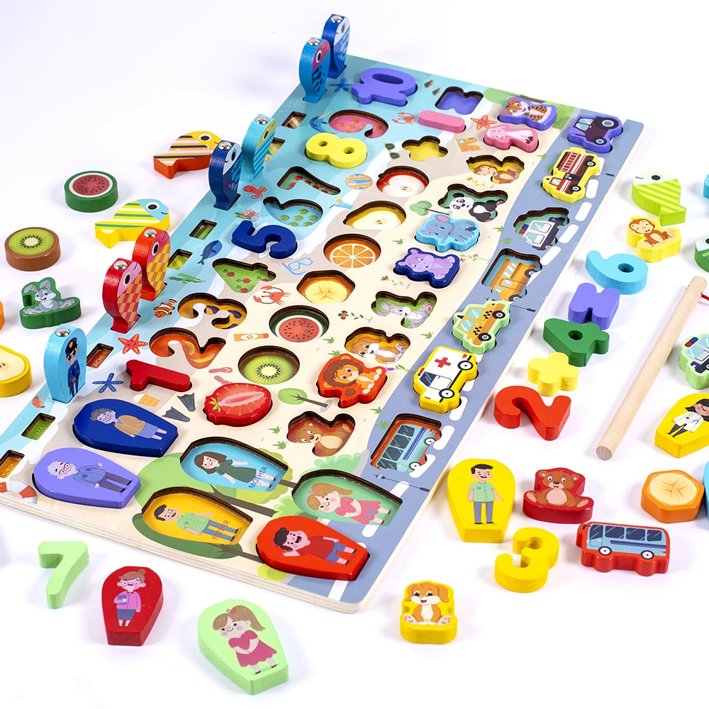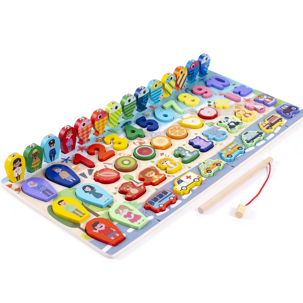 Обучающие деревянные игрушки Монтессори, Детская плотная доска, математическая рыбалка, детская деревянная Дошкольная игрушка Монтессори с геометрическим счетчиком