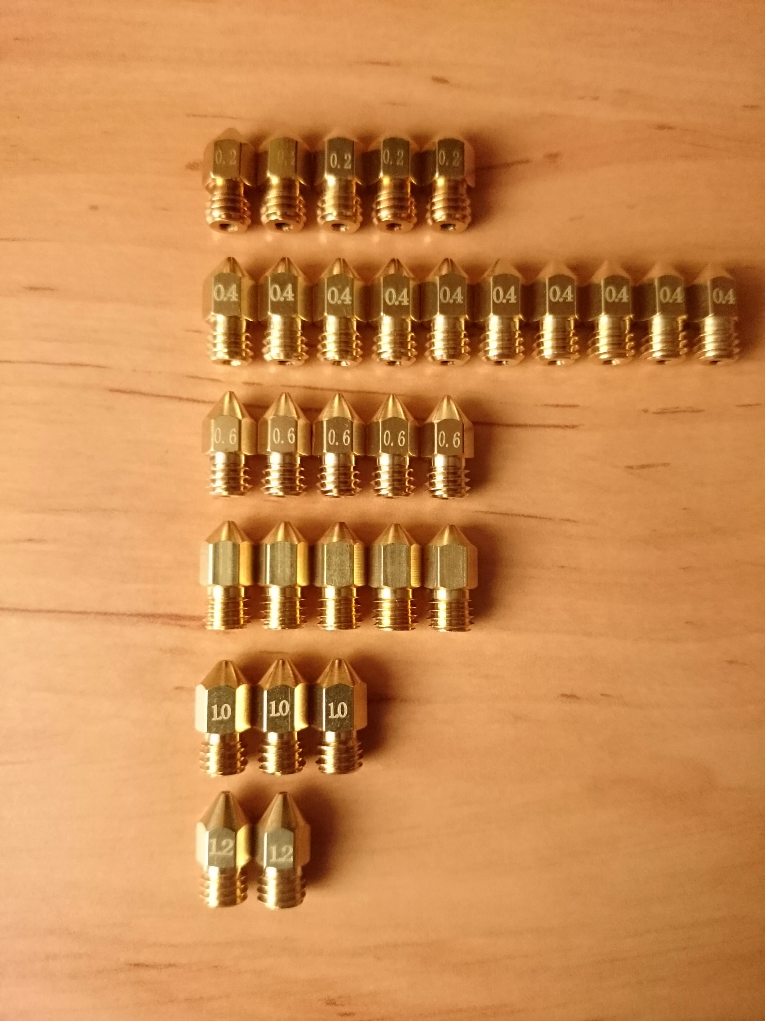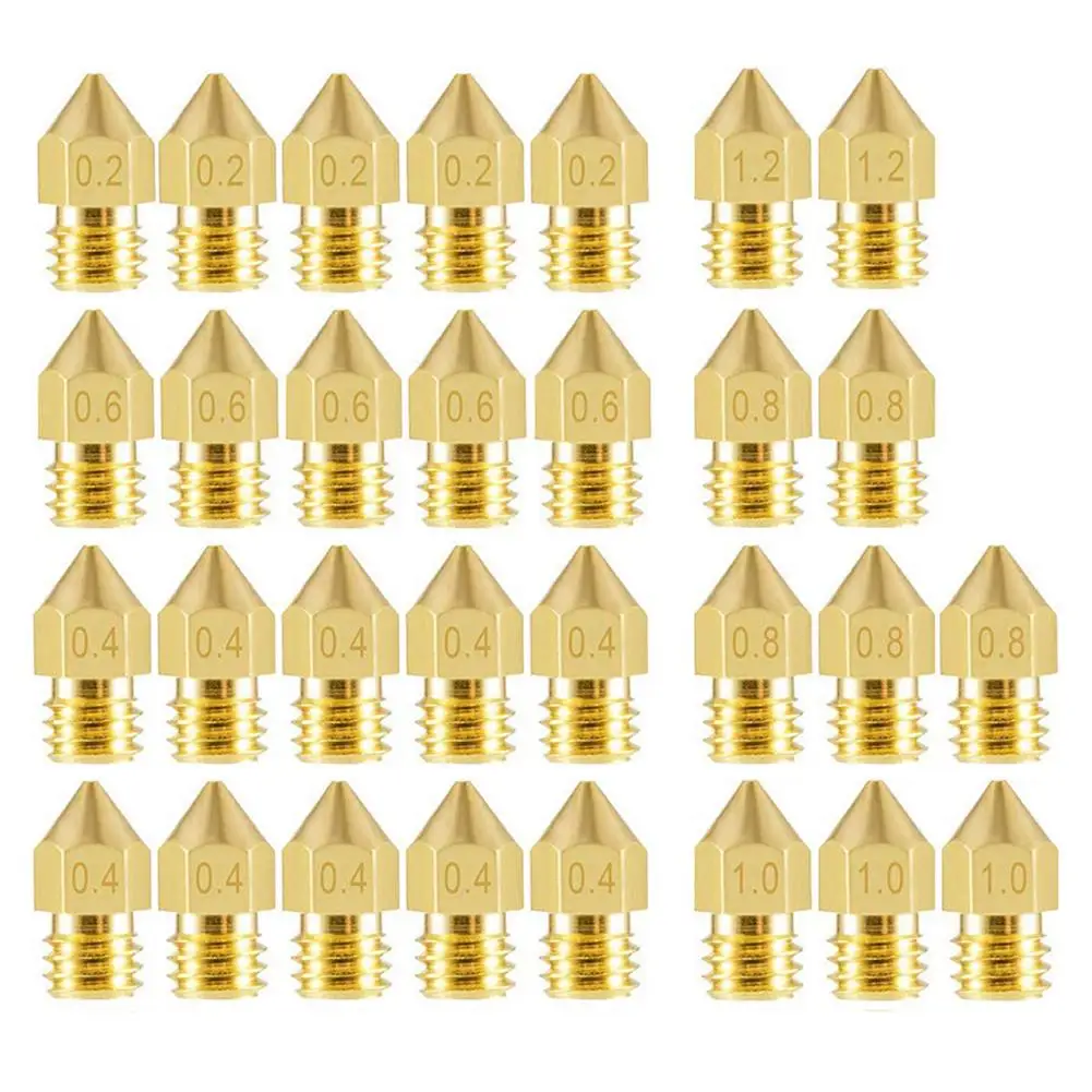 Латунные сопла экструдера высокого качества, 30 шт., золотые сопла для 3D-принтера MK8, Makerbot, Reprap I3 0,20,40,60,81,01,2 мм