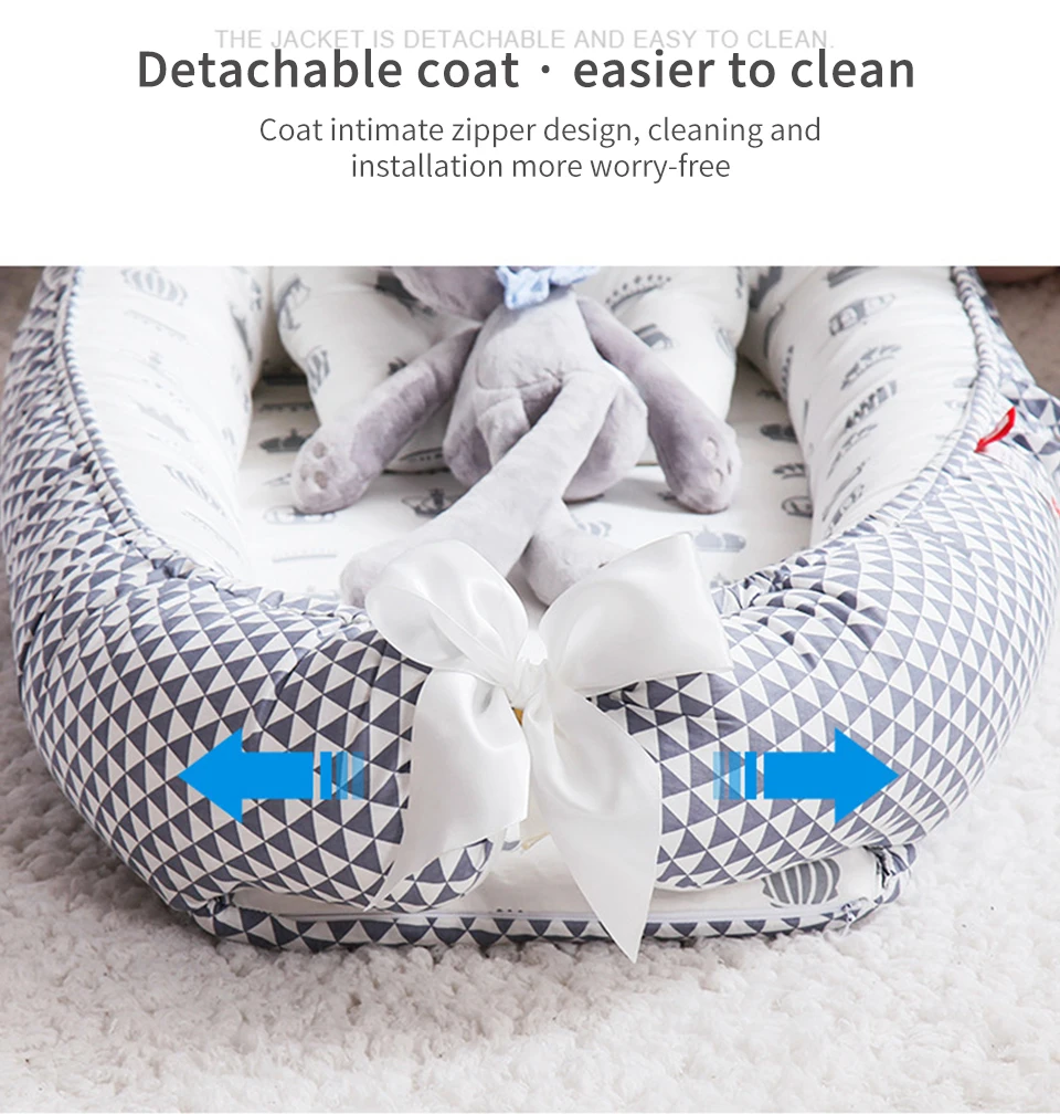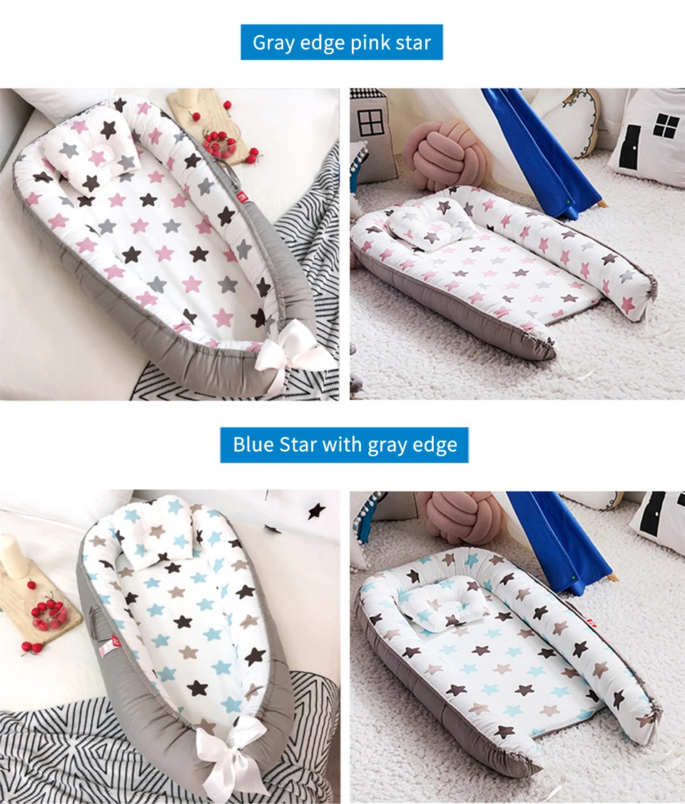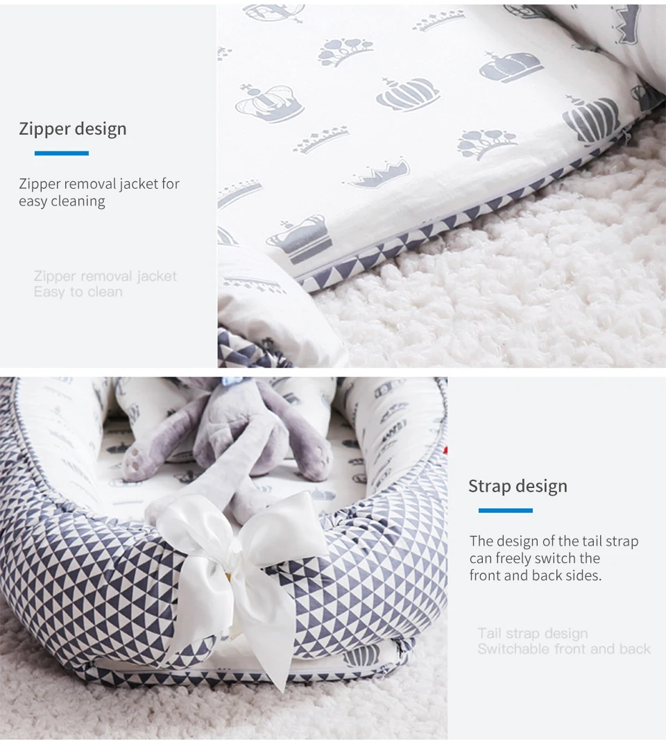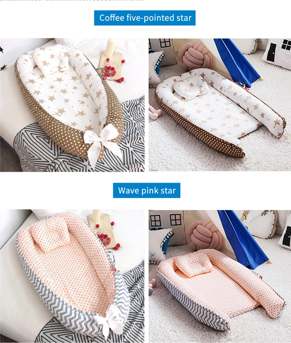 Портативная детская кровать 85*50 безопасное детское гнездо из хлопка съемная и моющаяся с подушками для путешествий