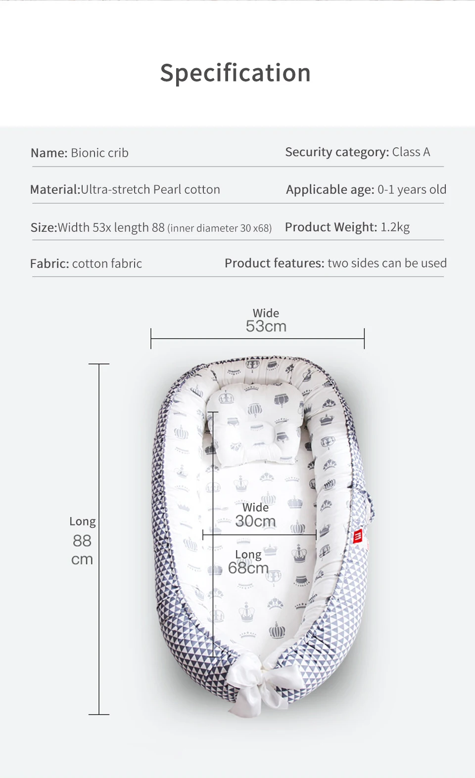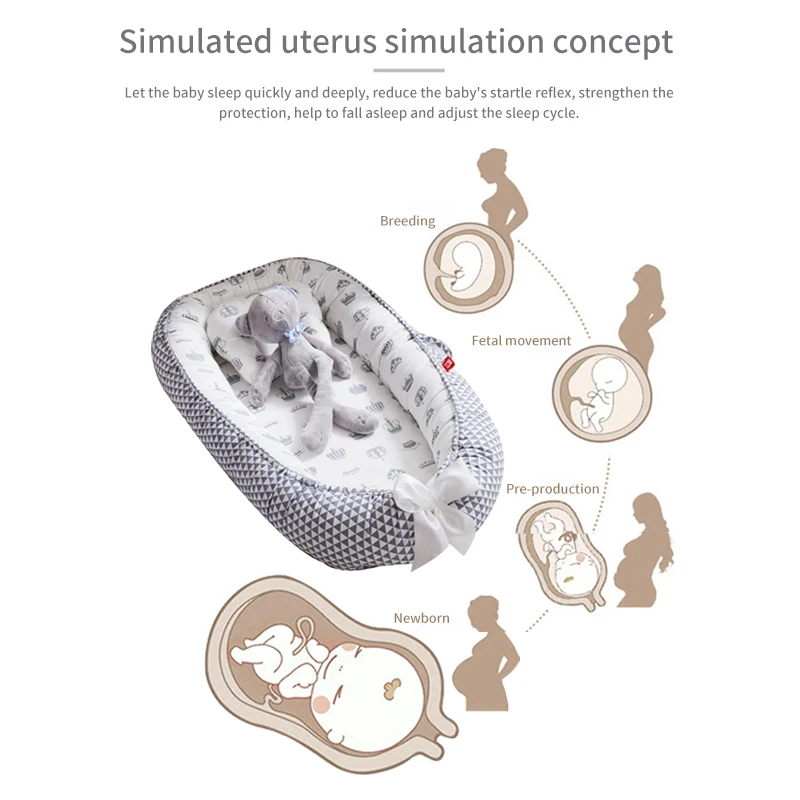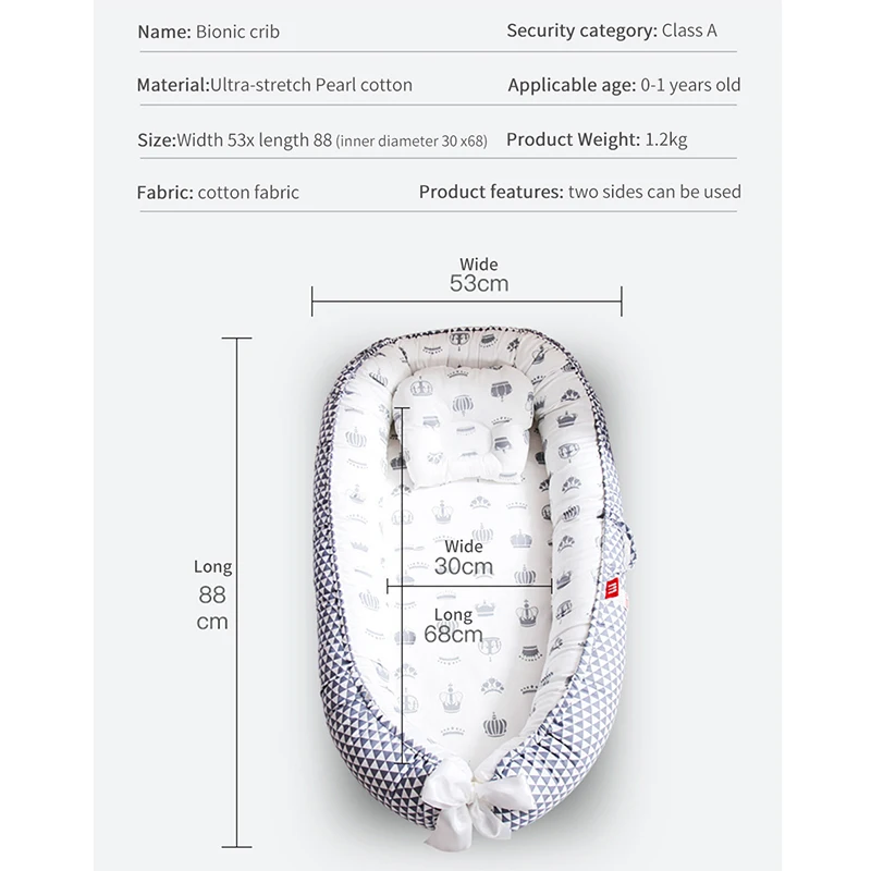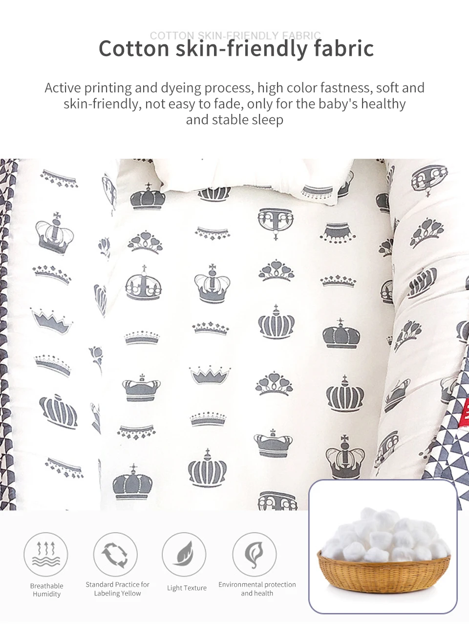 Портативная детская кровать 85*50 безопасное детское гнездо из хлопка съемная и моющаяся с подушками для путешествий