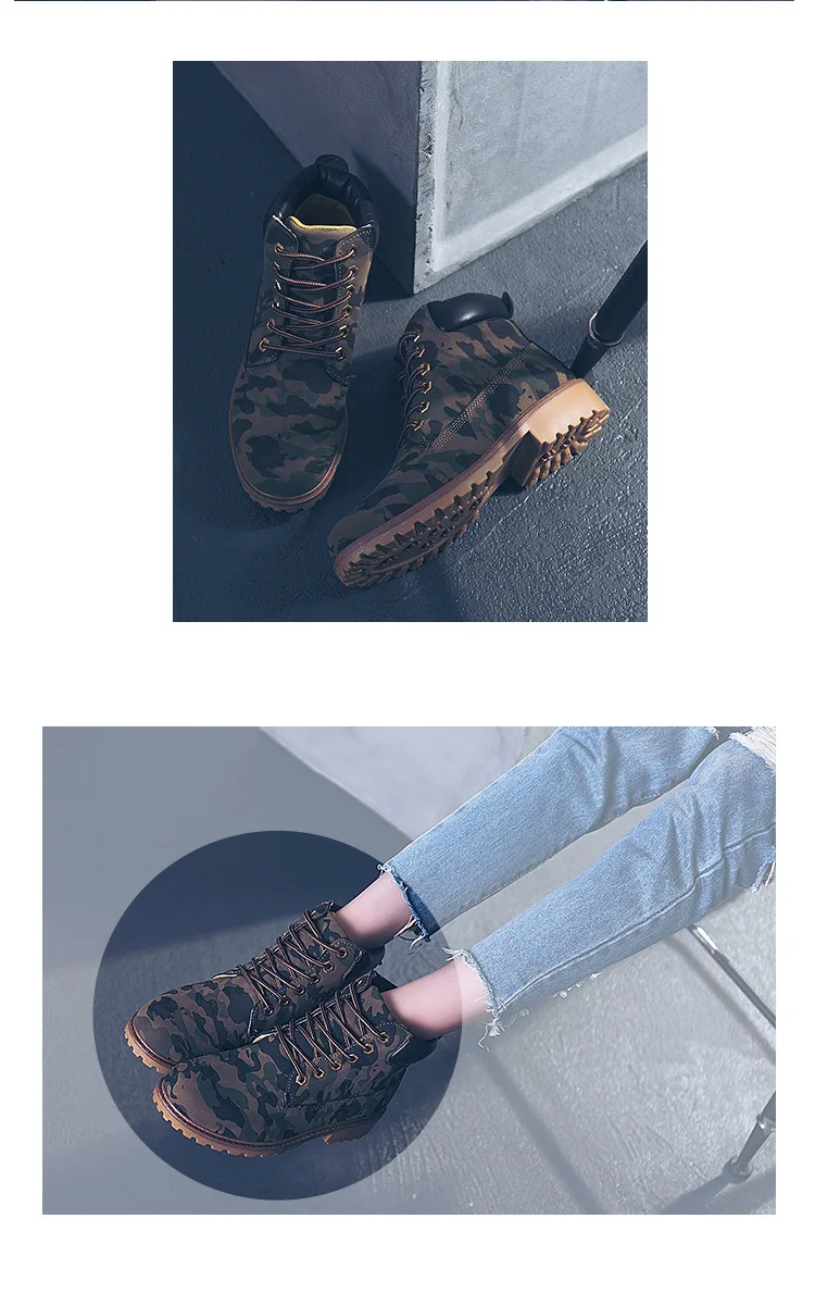 Женские ботильоны на плоской подошве, камуфляжные теплые ботинки на...