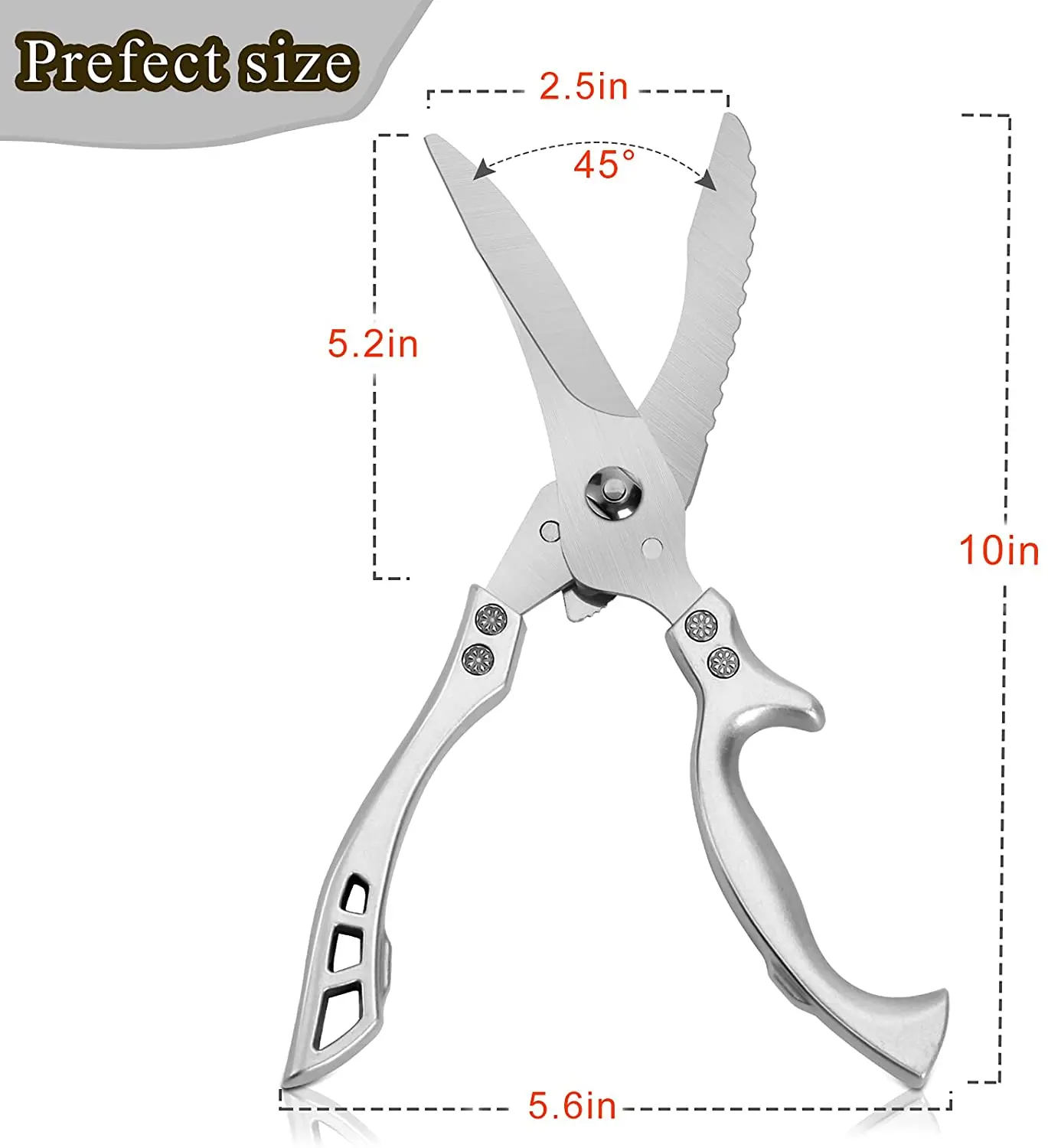 Самые острые кухонные ножницы-Изготовленные из сверхпрочной нержавеющей стали, эти кухонные ножницы станут самым долговечным инструментом на вашей кухне! И вы можете нарезать им все, что захотите-курицу, птицу, рыбу, приготовленное и сырое мясо, овощи, фрукты, травы и все, что вам нужно для еды.