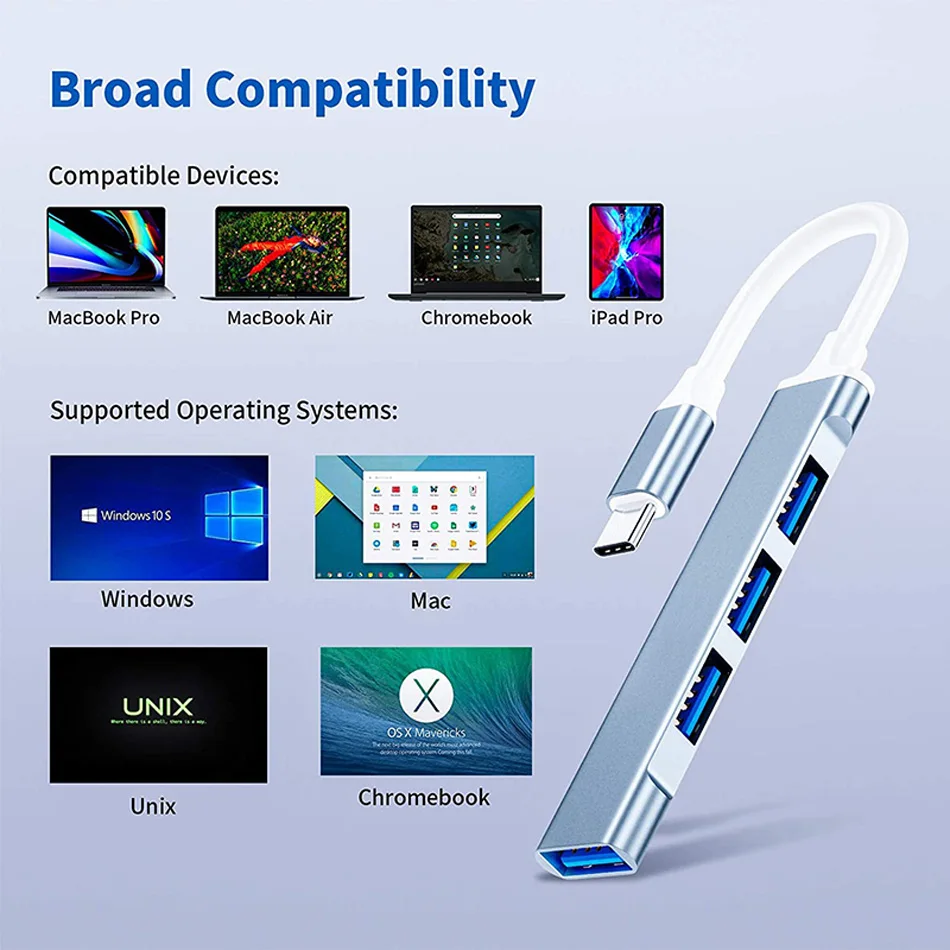 Адаптер OTG для Lenovo HUAWEI Xiaomi Macbook Pro 15 Air Pro, 4 порта