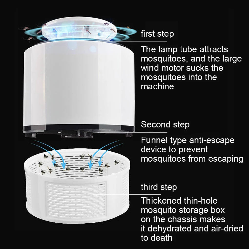Мощный воздушный поток вентилятора может сделать вихревой, чтобы убить комаров безопасно и легко путем воздушной сушки и обезвоживания.