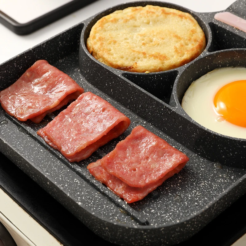 Сковорода с 2 отверстиями для жареных яиц, бургеров, антипригарная, для ветчин, блинов, деревянная ручка, подходит для газовой плиты и индукционной плиты, кухонные принадлежности