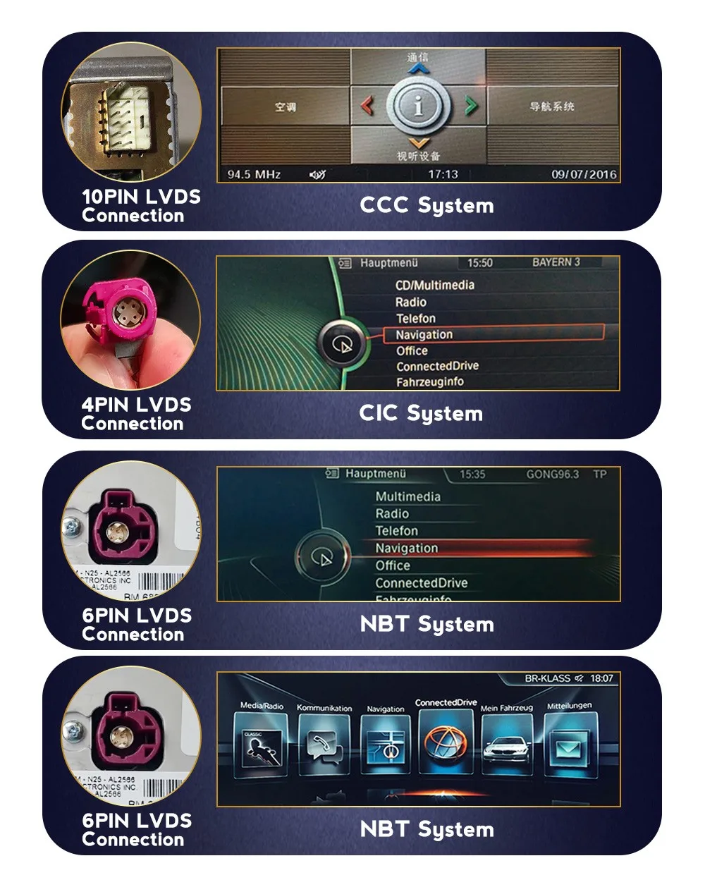 2008-2012 1/2/3/4/5/6/7 серии, X1/X3/X4/X5 оригинальная система IC, 4pin LVDS